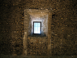 The16th century Chapel of bones, Évora, a helpful place (it is said) to meditate on the transience of material things in the presence of death.