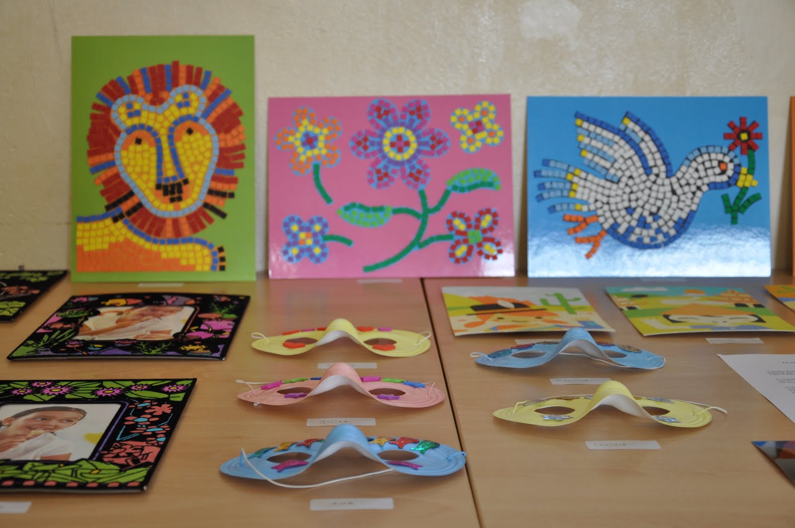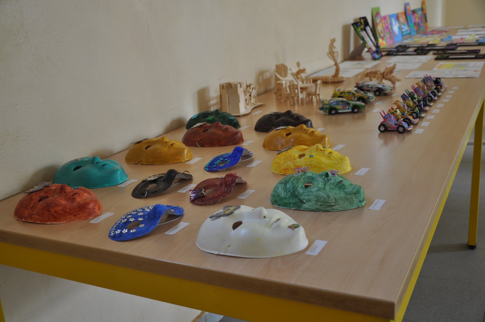 A group of very enthusiastic children have today painted and decorated Carnival masks and although their main goal seemed to have their masks ready to be worn within the minimum time possible I managed to have them listen to me, particularly in regards to matching the acrylic colour paint with the stickers they had selected to use, in order to further decorate the masks. A few things called my attention throughout the day, amongst which I would refer the eagerness these children felt to learn and touch unknown things to them (the masks and the puzzles); the “fear” of selecting different decorative motifs from a wide variety of stickers, decorative pebbles, as well as animal and flower shaped forms (once the first child selected a butterfly sticker, all the remaining children followed suit); the profound look in their eyes when they started realizing what their final work was going to look like and the thrill of finding out that there would be a winning prize.