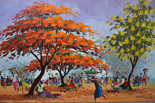 ReplyDeletemy wife spent some time working in Angola, and a co-worker gave her a Kabongo's painting as a gift. we have one from the same sereis as those on this page, with vibrant colors on the trees and many african women and children. i can send you the photo for your blog e-mail me at alecjr (at) gmail (dot) com