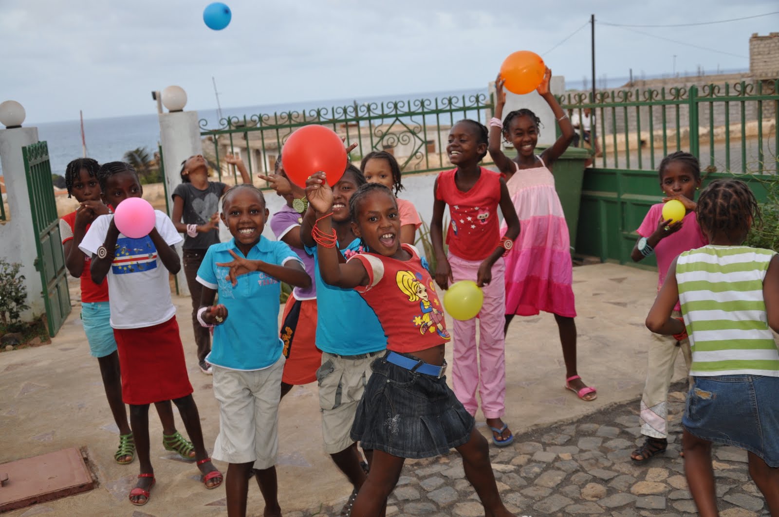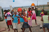 Soon after having eating some slices of cake, they all went into the patio to play with the balloons to almost immediately come back in to dance to the sound of "funana" and "coladeiras.