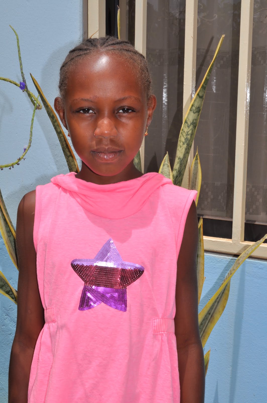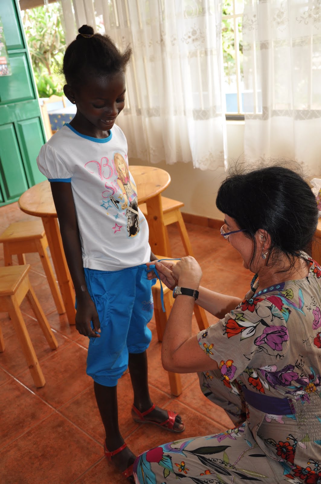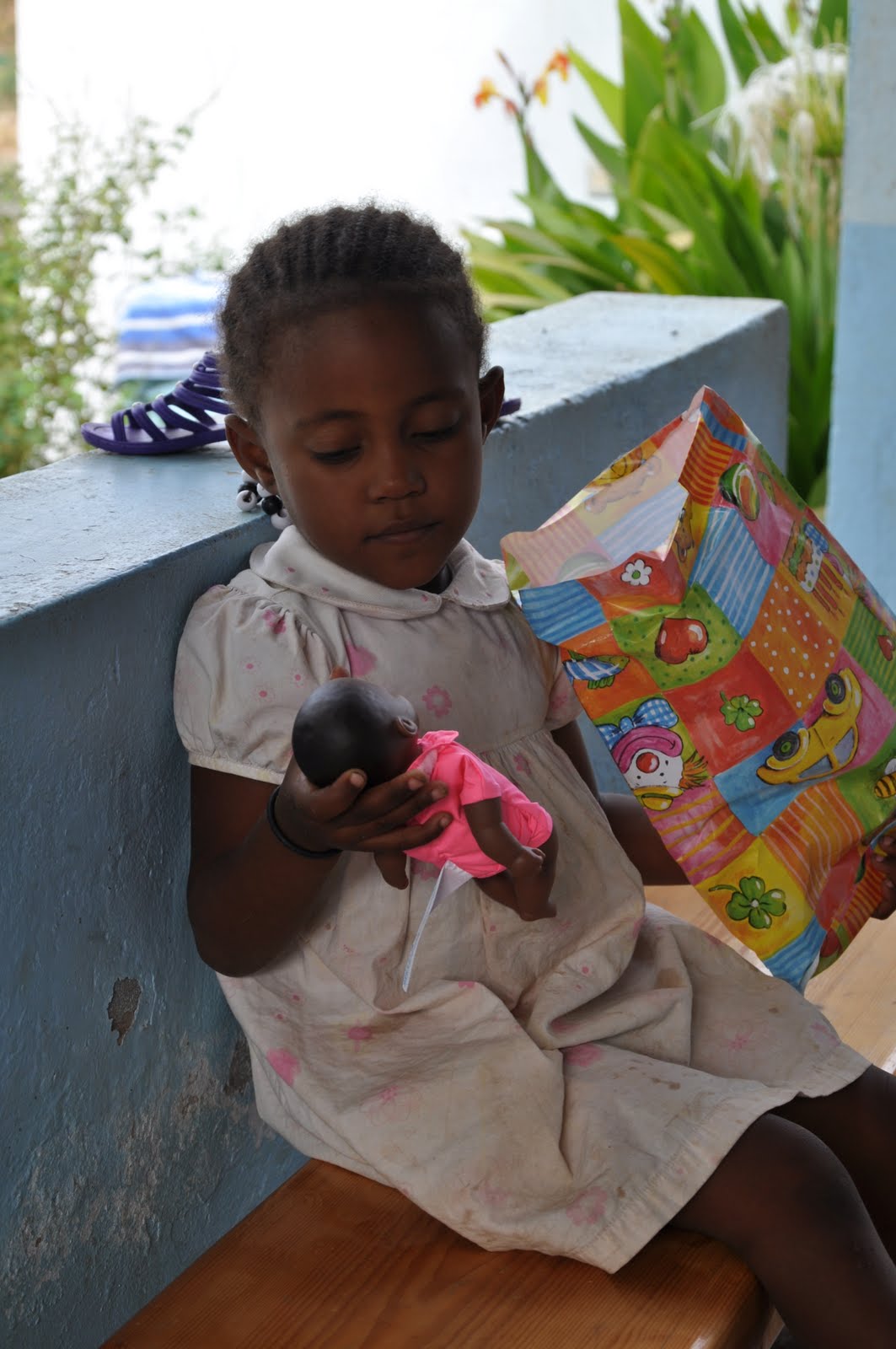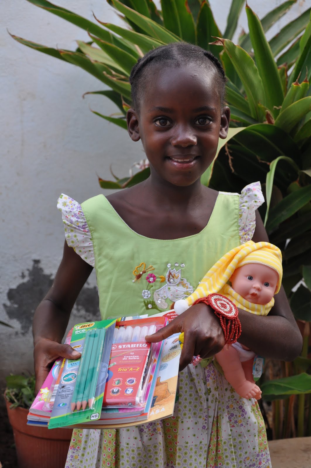 Leinira wearing one of the outfits and sandals I bought for her (Left). Leinira wearing one of the outfits I bought for her (Right).Note: The money I was given by Luisa was used for an outfit for Tarine; the money given by João was used to buy a doll for Nessinha; the money given by Manuela was equally divided to reinforce the existing amount for Simone, Neuza and Justina; the school material provided by Carla was given to Tarine and the money given to Leinida, who has become her protégée. The money given by Isabel was used for the birthday party (having Sibylle proovided the rest). The whole amount of money collected by the "godmothers" has been given to Sibylle to pay for the school fees and whatever may be necessary for the girls.