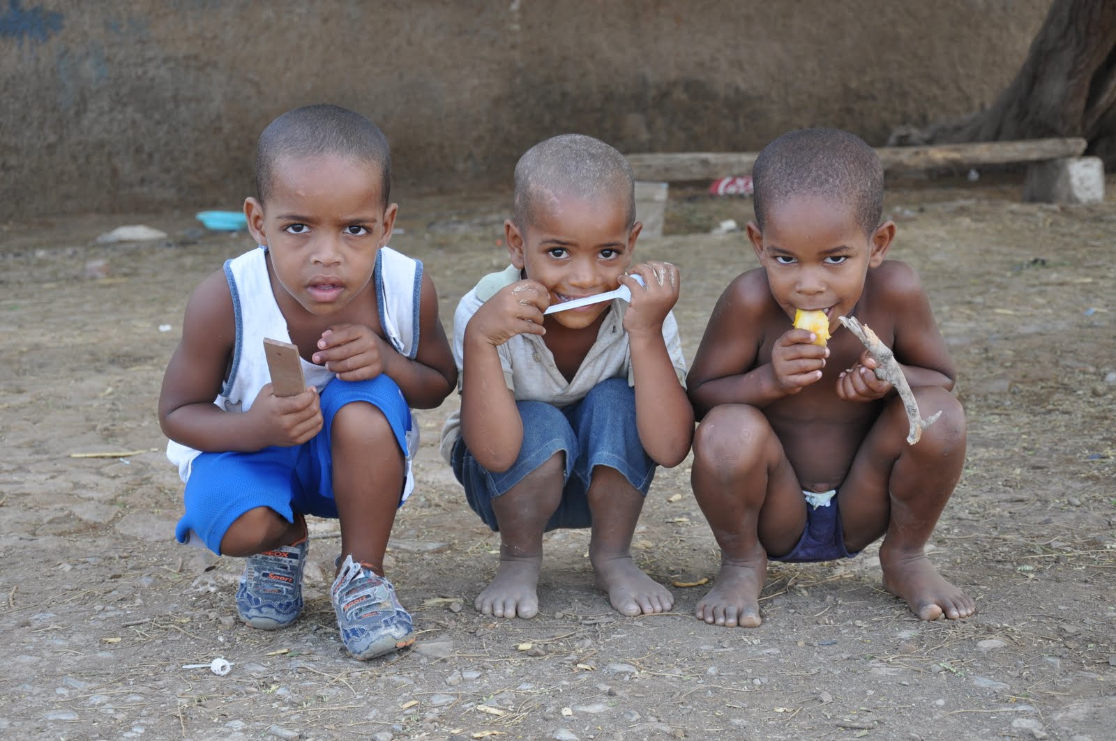 As we walk around Calheta and Veneza we come across dozens of children playing with their self-made toys ... helping their parents in the daily village routine ... or just sitting around ...