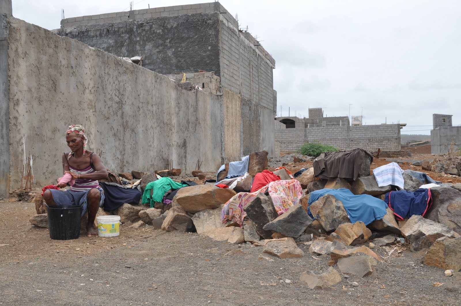... I like to walk around and "feel" the village atmosphere ... with its smells, sounds ... specks of colour ... here and there ... in the middle of the unfinished concrete houses, ... the people ... those I have already met and those, whom I have seen a few times before but whose daily activities don't facilitate the conversation ...