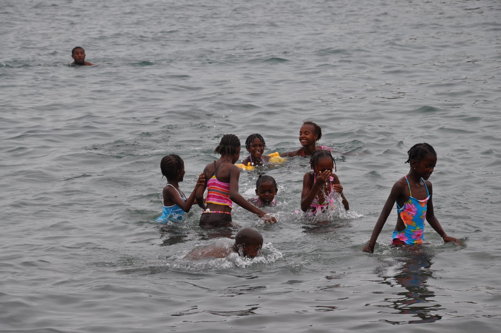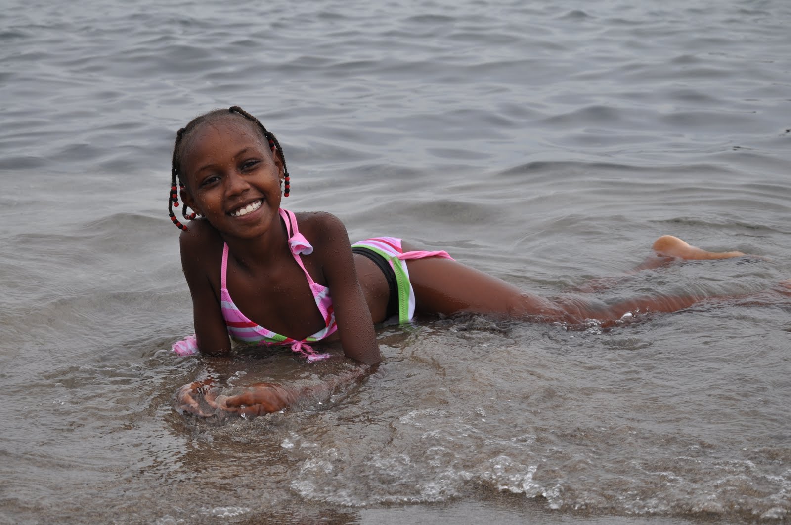 Neuza (Left) and Justina (Right) with their new bathing suits on.