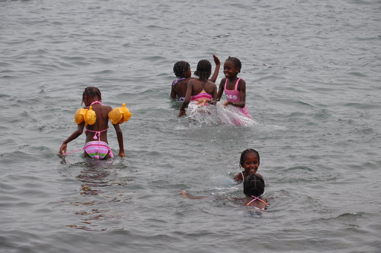 Having bought bathing suits for everyone of the girls (Tarine, Simone, Neuza, Leinira, Ivanilda, Justina) and a pair of shorts for Eduardo, we headed to Calheta beach around five in the afternoon and just took to building sand cakes using the plastic moulds, spades and water sprinkler I had brought along.