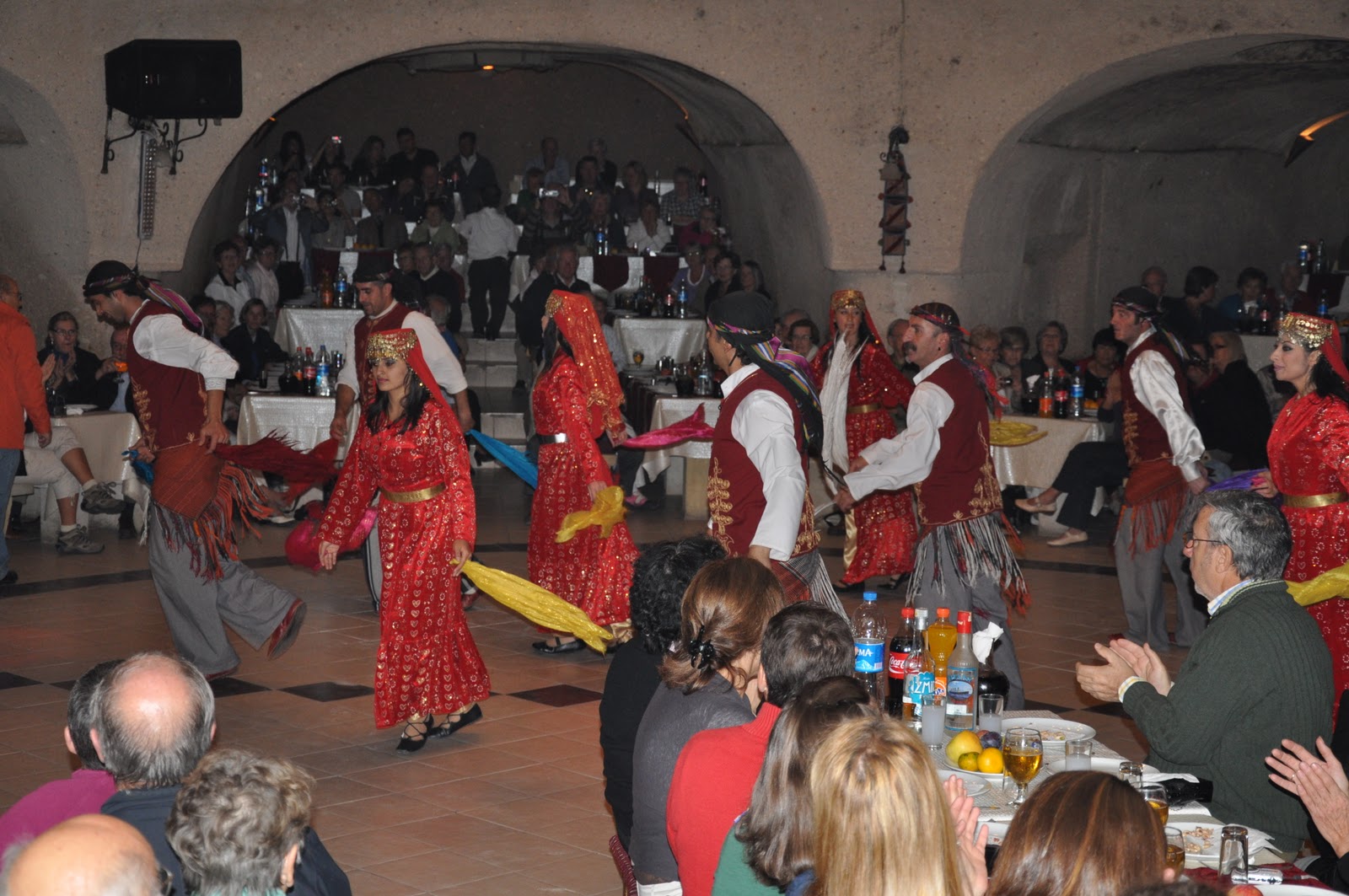 Several folk dances were to follow, which brought with them a sense of joy and colourfulness to the performing room. A few Spaniards sitting next to us started behaving in a rather indelicate way, (I believe influenced by the alcohol), but their loud talking and singing, which had partly interfered with the playing of a traditional instrument similar to the Oud was to soon stop ... the moment a female Dervish walked onto the stage.