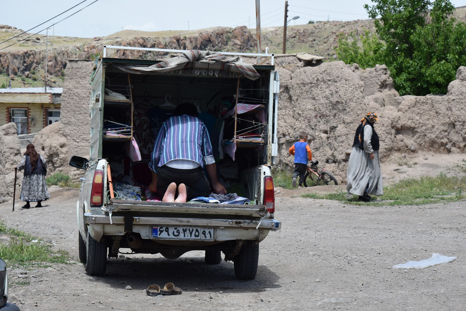 We headed to Meshkin Shahar soon after having visited the Shahr Yeri where communication with the local people was difficult, I believe because of them being slightly distrustful of foreigner visitors. We managed somehow to talk to a vendor who goes from village to village selling handicrafted rugs and carpets.