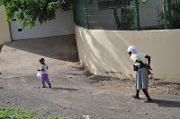 By the time Gehard (who was going to film the ceremony) and I reached the school at the agreed hour, not many parents or family members had showed up, though most of the children were already awaiting us. Sibylle, Benedita and Nate were unfortunately not able to come to the "opening" of the party, as some guest showed up at the restaurant and didn't look like they were going to eat their meals in a rush ...