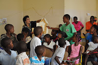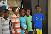 The "English classroom show". From left to right - Justina, Elcy, Tarine, Erica, Wilson, Cláudio, Eduardo, Leandro and Esmael.I have been often told I "spoil" the children, by giving them "little presents" when they accomplish something ... but I, in all honestly believe a small souvenir does not hurt ... and may even encourage them to further continue being committed. I know it may not always be that way along their adult life, but I feel one should not forget these children are (most of the time) not "encouraged, let alone praised for their effort and committment.