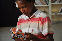 Against all odds, after fifteen minutes allowance, we started the ceremony, with an English "classroom show" on the part of the sixteen children who attended the morning workshop, and who unhesitatingly responded to the cues I prompted. Soon after they were given their souvenirs and told they would be able to take home the "Art pieces" they had made, once the party was over.