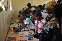 Hand coloured African dolls (Left) and pieces of jewellery (Right) made by the children and adolescents attending the afternoon workshop