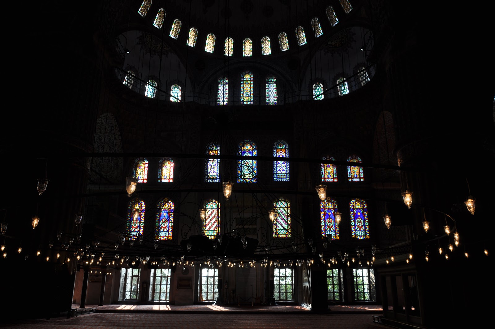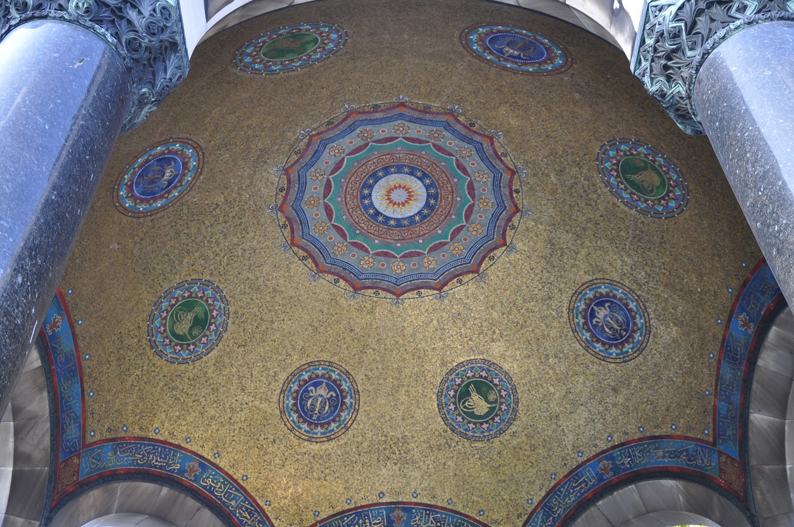 If the Mosque is already impressive, as seen from the courtyard, once we walk into it we are immediately taken by its unquestionable magnificence and beauty. Its interior is of a unique graciousness with columns decorated with more than 20,000 Iznit hand made ceramic tiles, there are more than 200 stained glass windows, whose incoming light is combined with the one of a few chandeliers, and one should not forget the finely carved and sculptured marble Mihrab with a richly decorated pulpit (Minber).