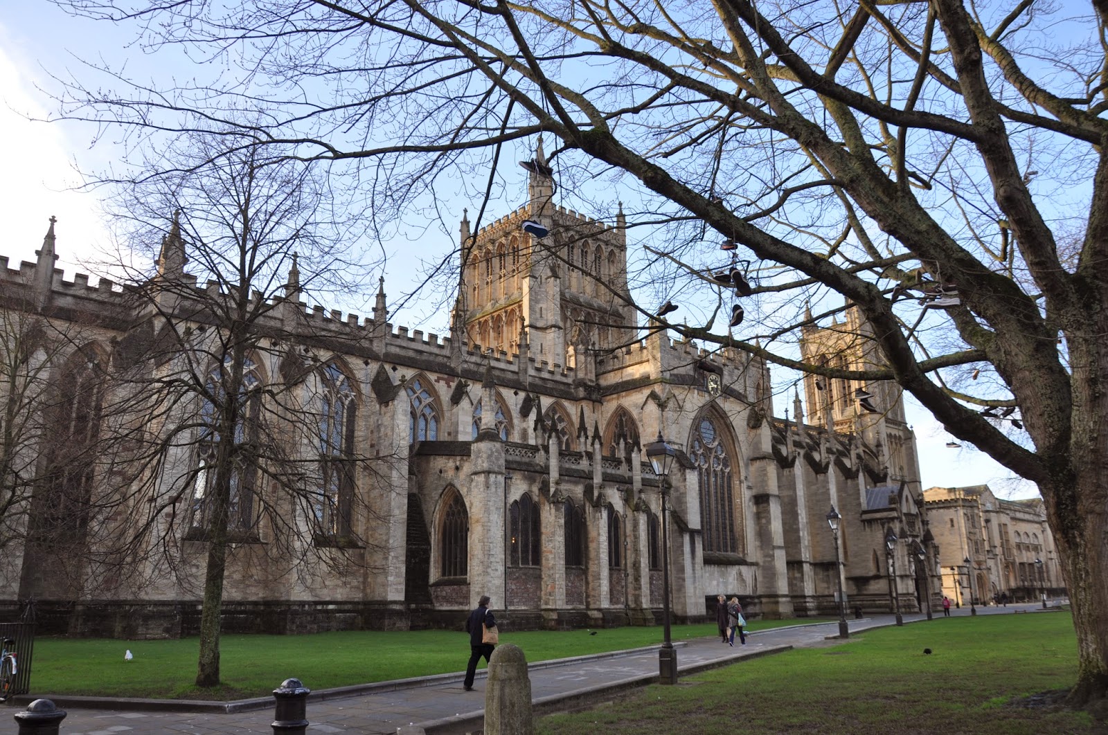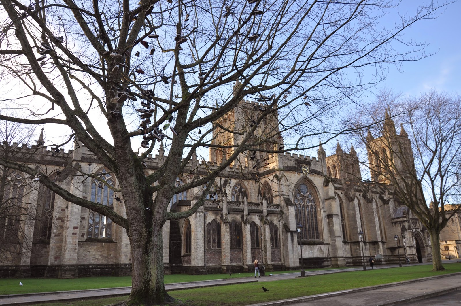 Constructed over a period of more than 700 years the Bristol Cathedral was beyond any doubt the most impressive building located on College Green. Quite strangely fairly close to its west front entrance we came across a tree on which several pairs of tenis shoes were hanging (?). I didn't get a chance to ask anyone the particular meaning of this, though I believe it to be a probable Modern artistic manifestation like possibly any other