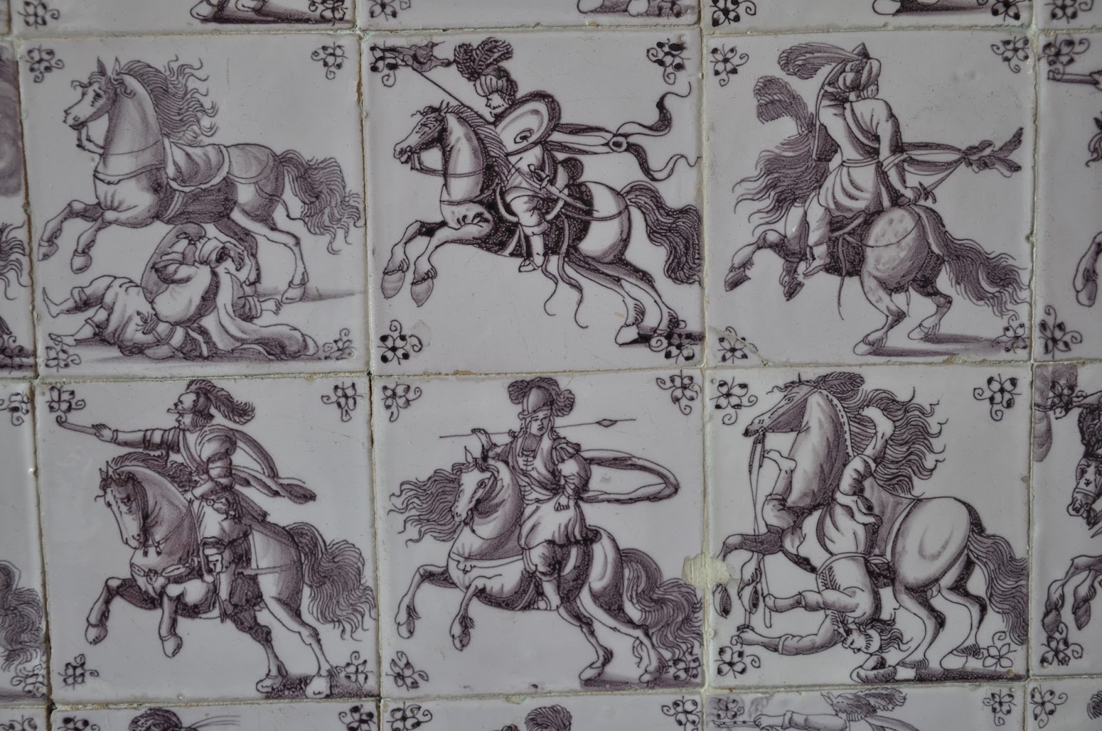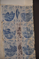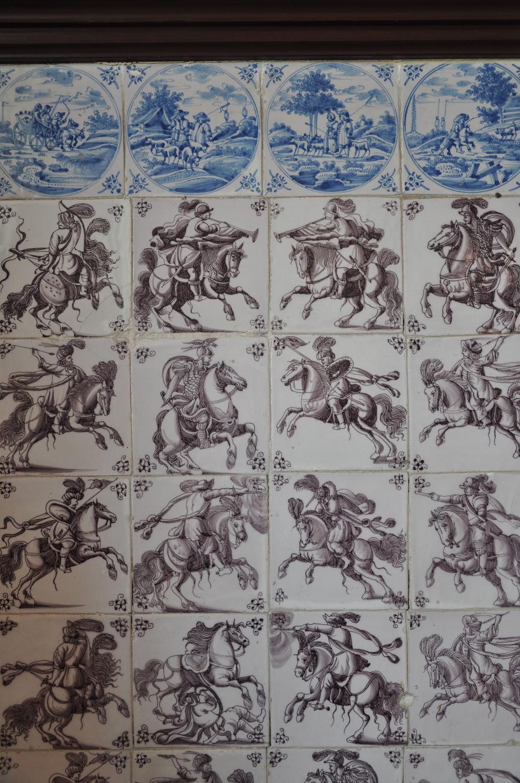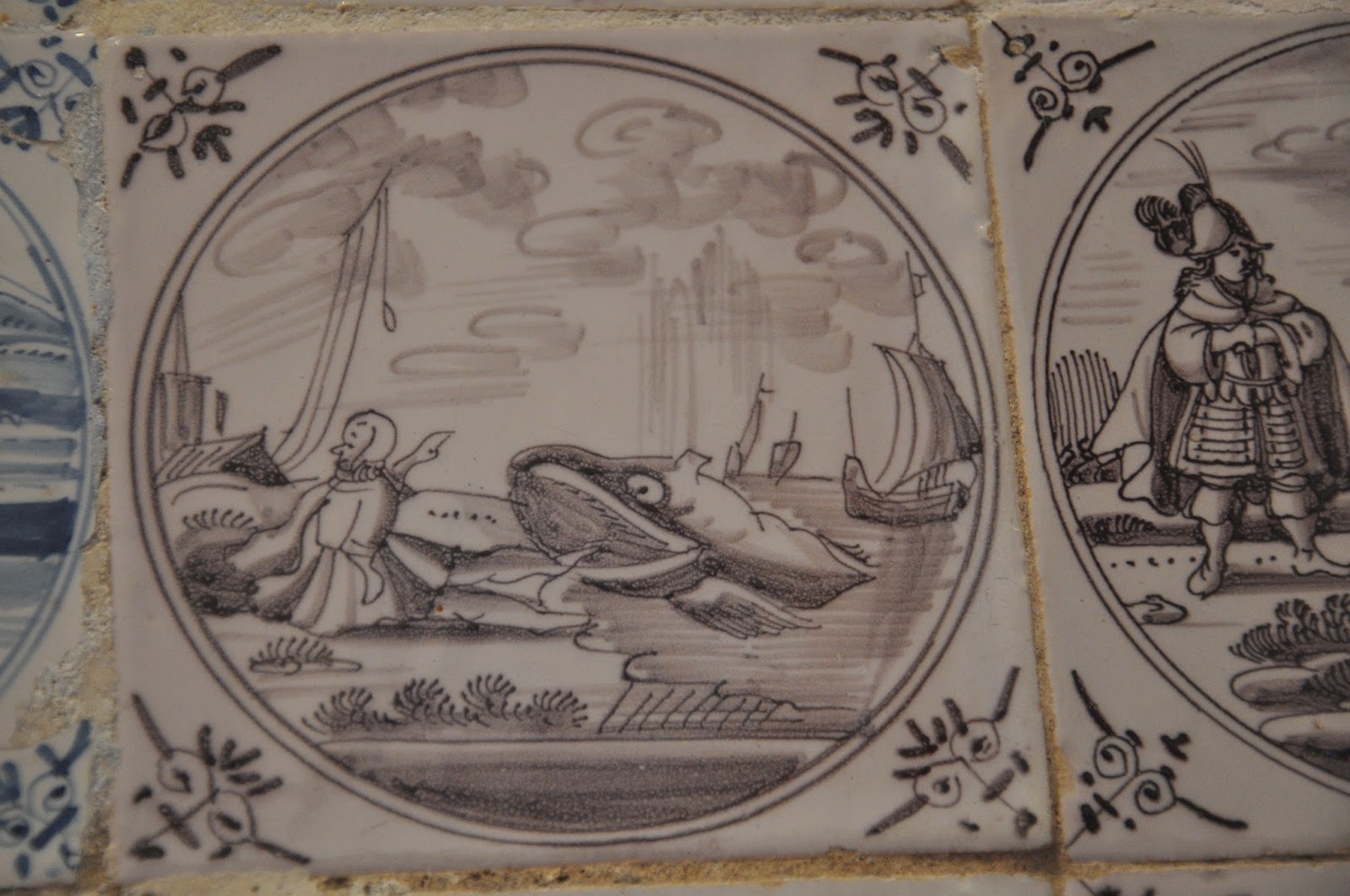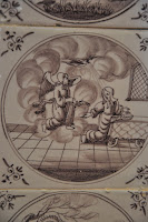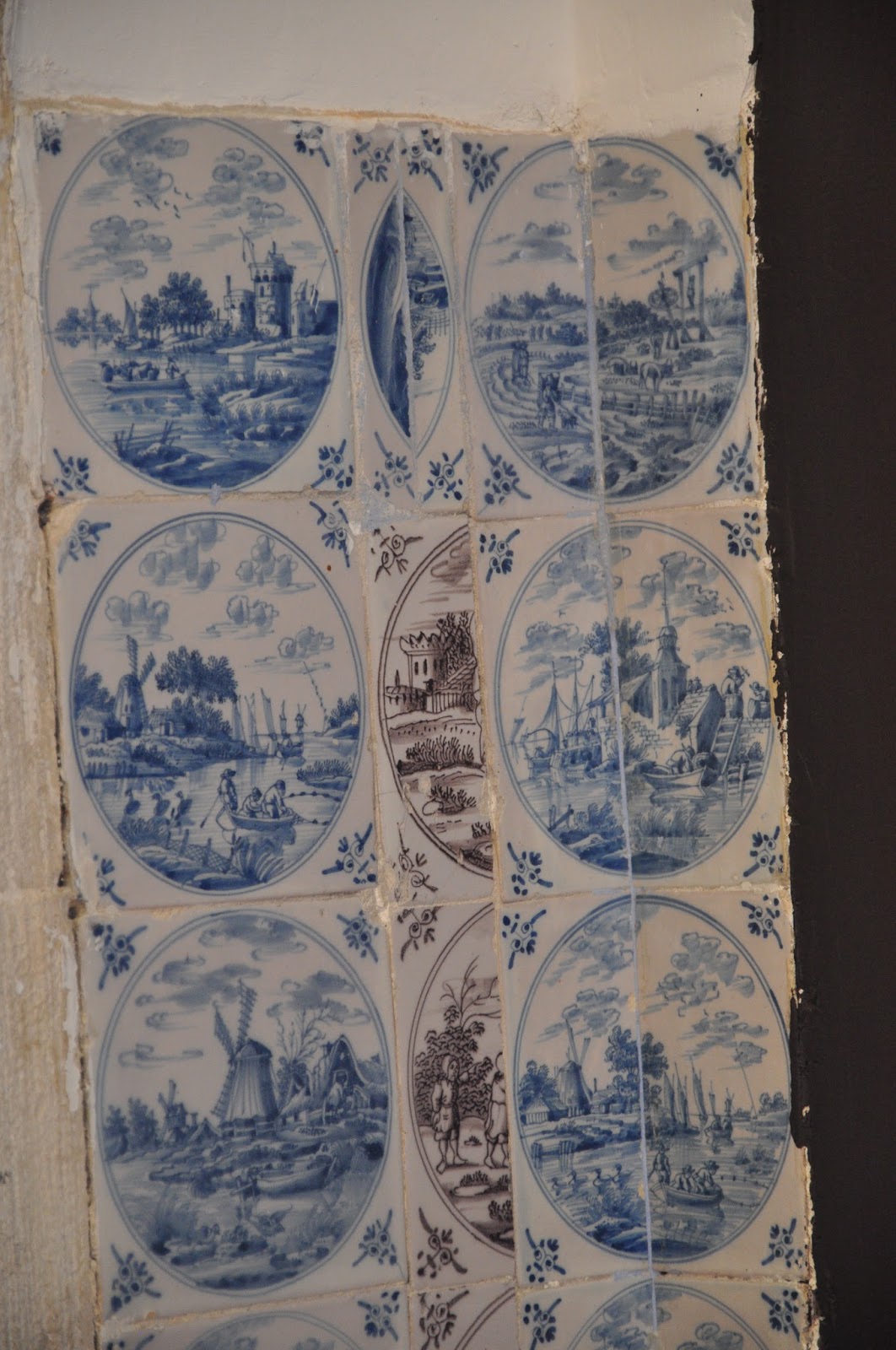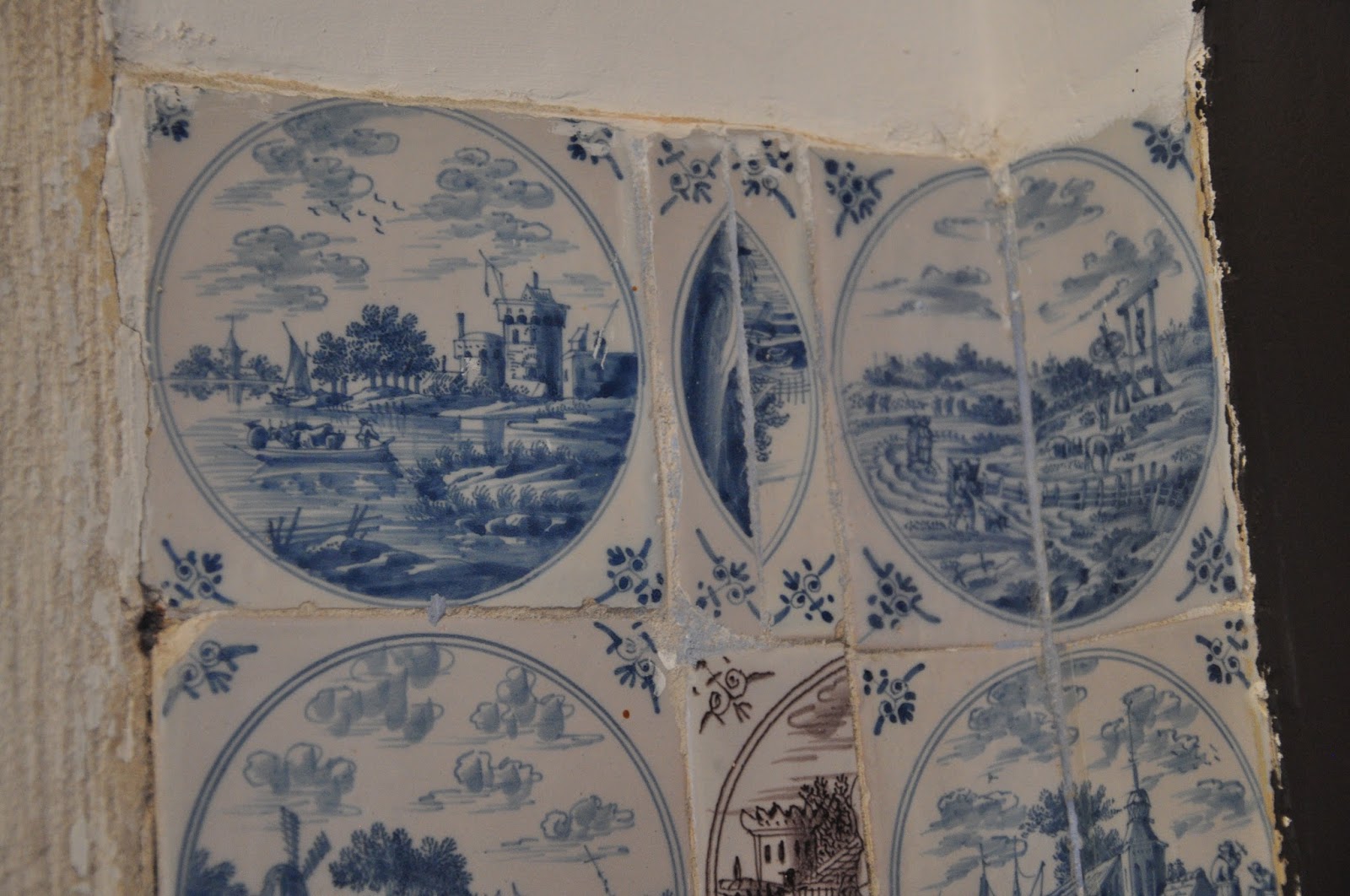 The Biblical glazed tiles painted with manganese oxide covering the centre part of the walls, whose edges are covered by cobalt blue tiles of landscapes, were quite interesting in as much as their 63 scenes were divided in those pertaining to the Old Testament with 36 of the New Testament, all of which are represented within a double circle with an ossenkop in every corner.