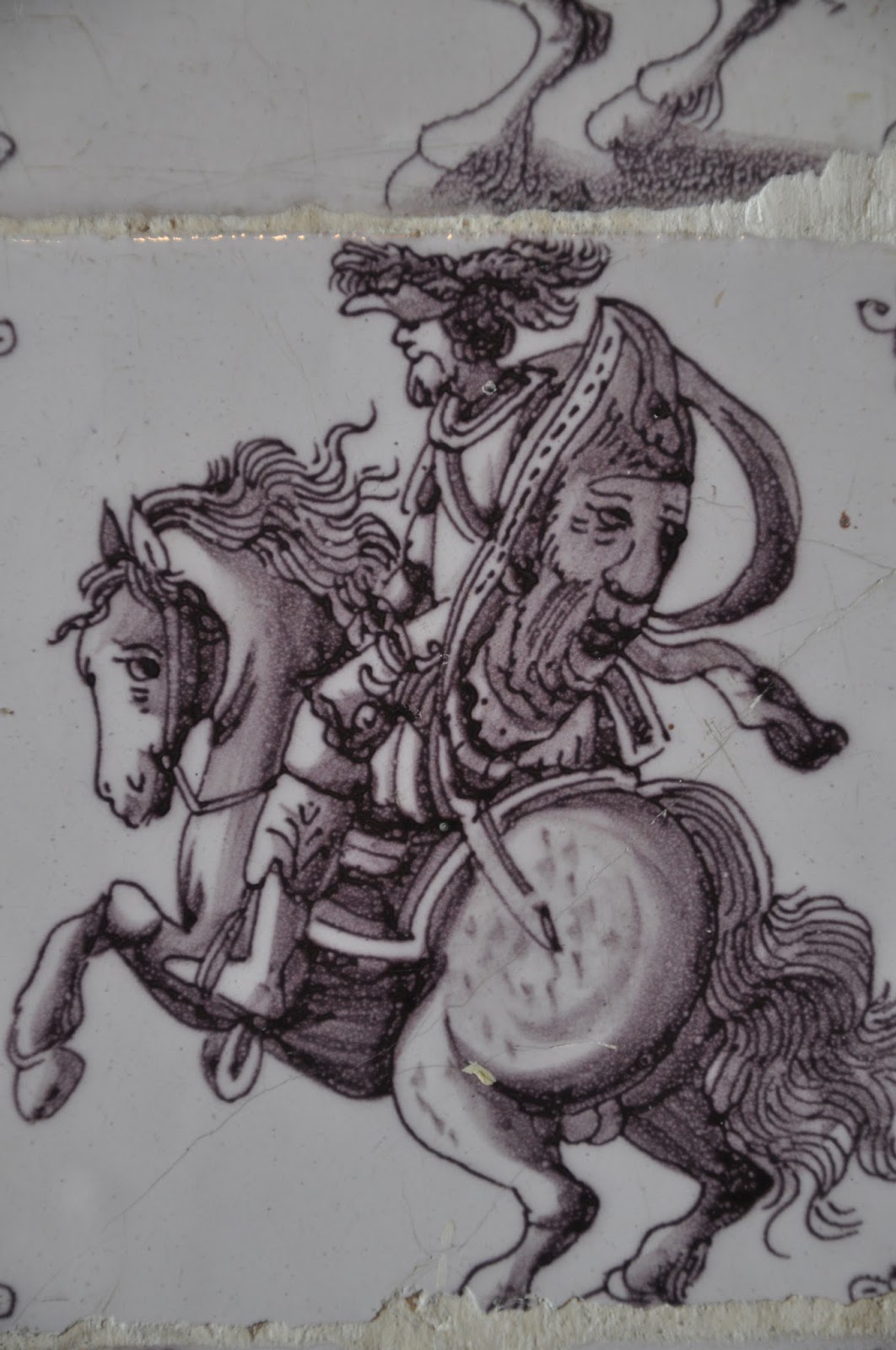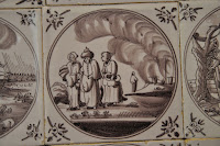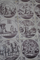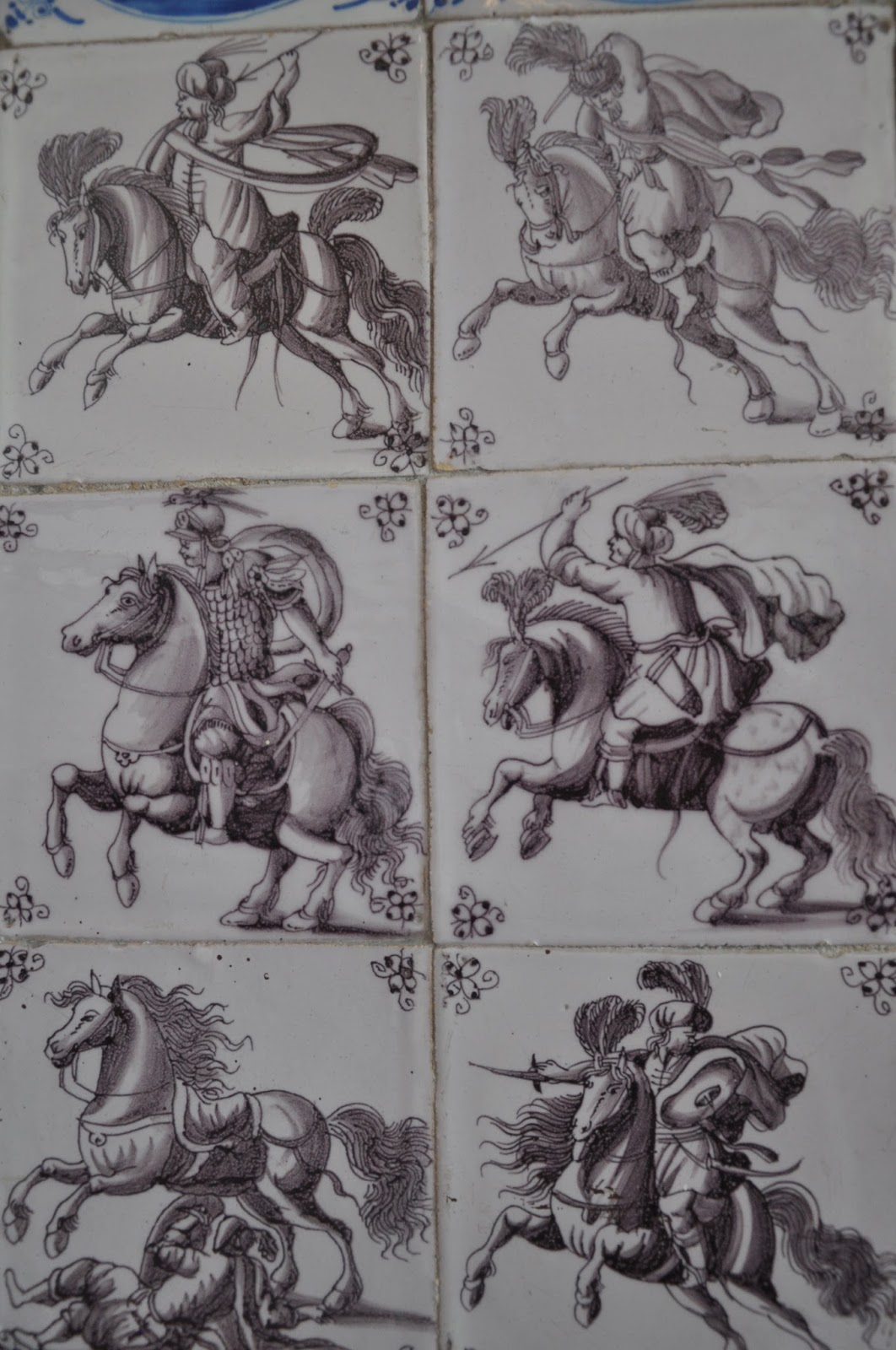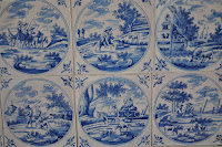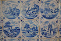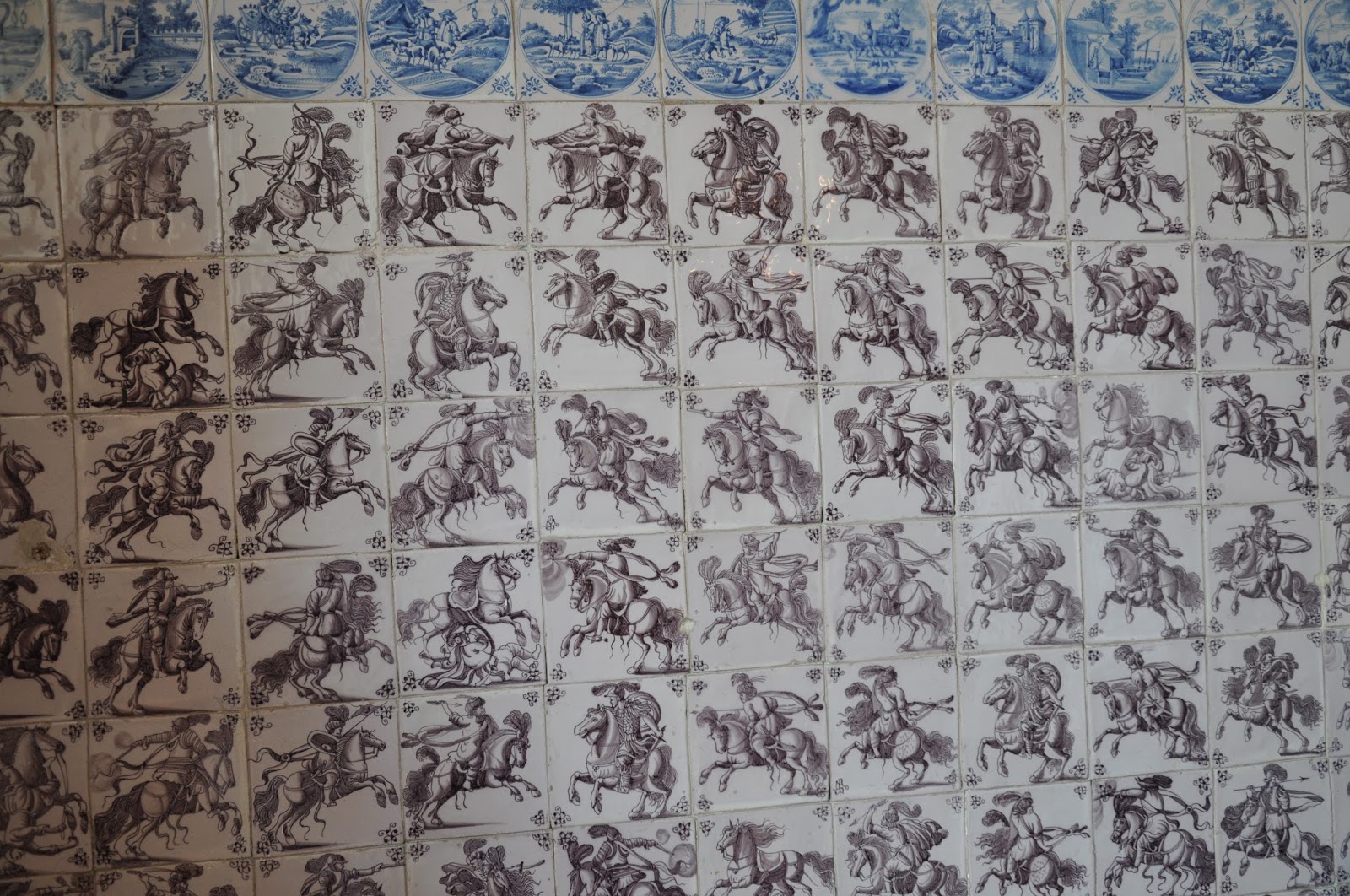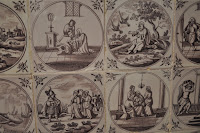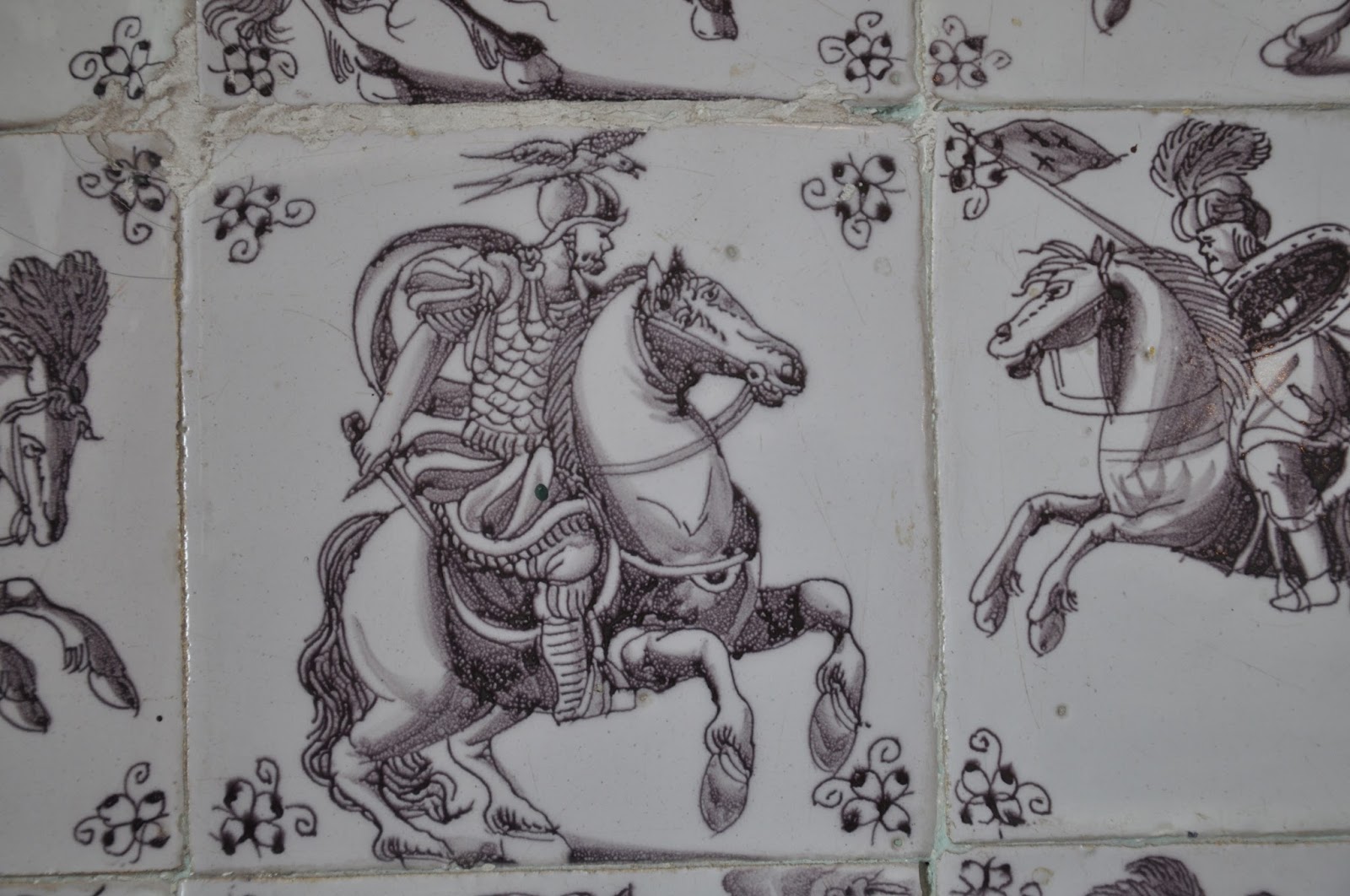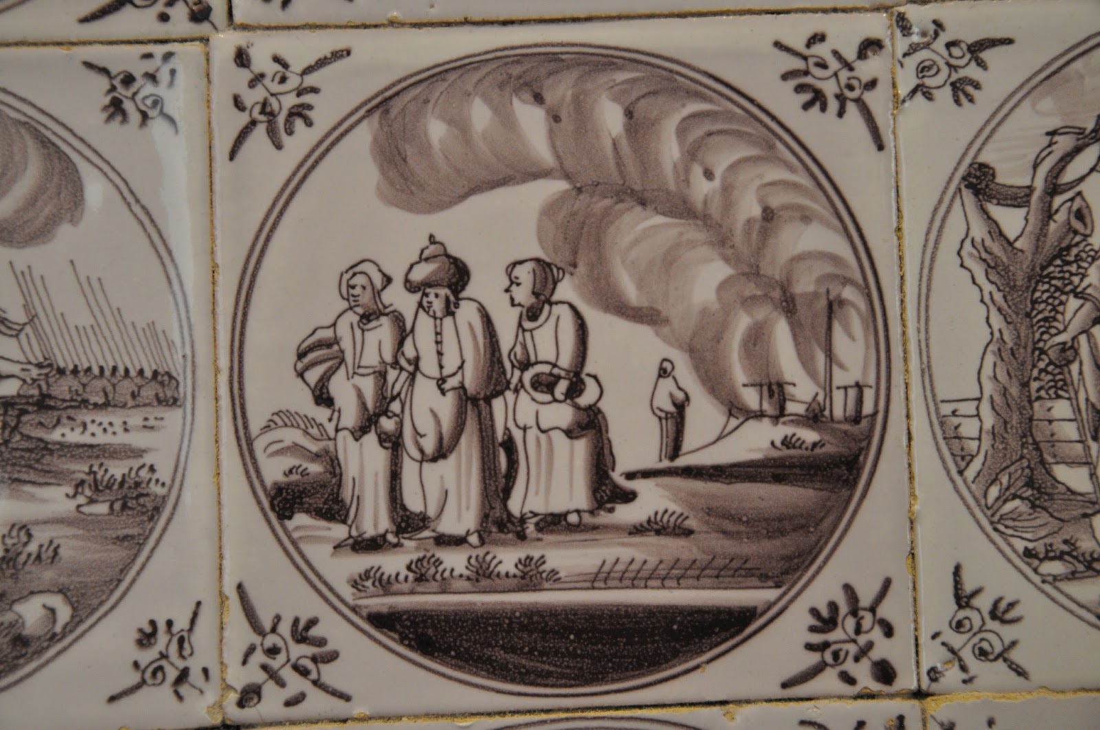 The Biblical glazed tiles painted with manganese oxide covering the centre part of the walls, whose edges are covered by cobalt blue tiles of landscapes, were quite interesting in as much as their 63 scenes were divided in those pertaining to the Old Testament with 36 of the New Testament, all of which are represented within a double circle with an ossenkop in every corner.