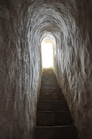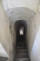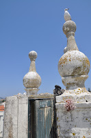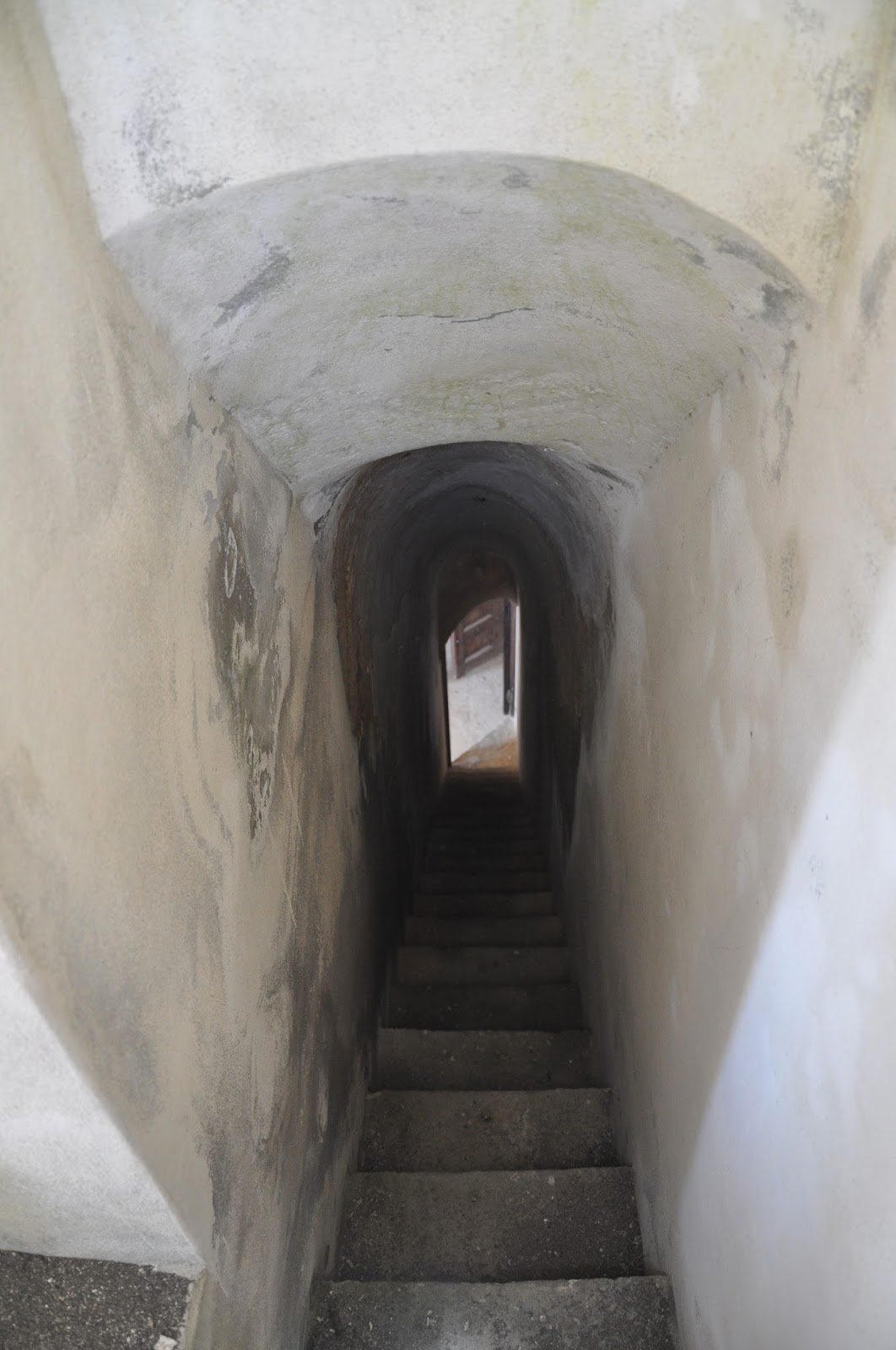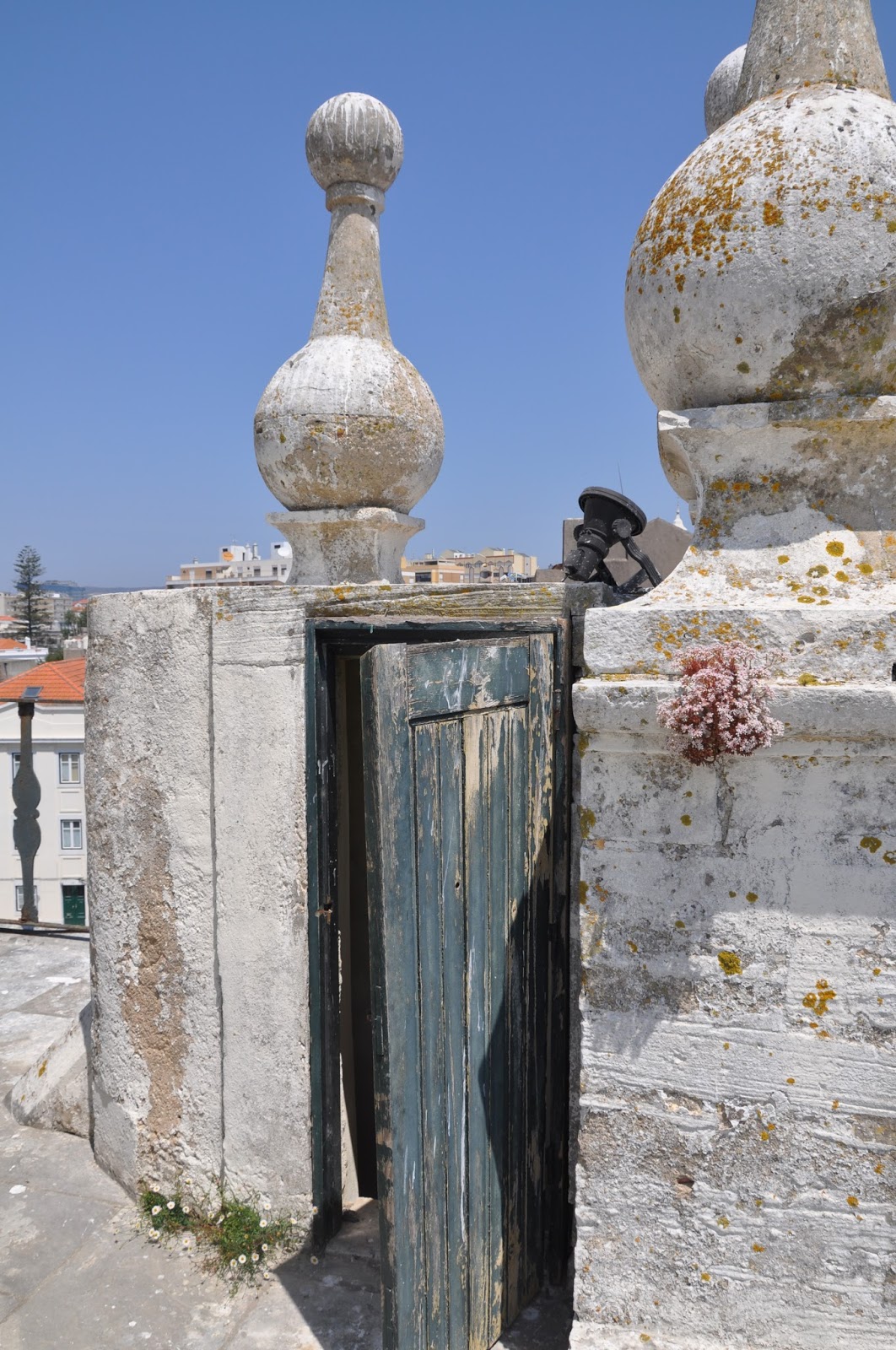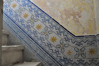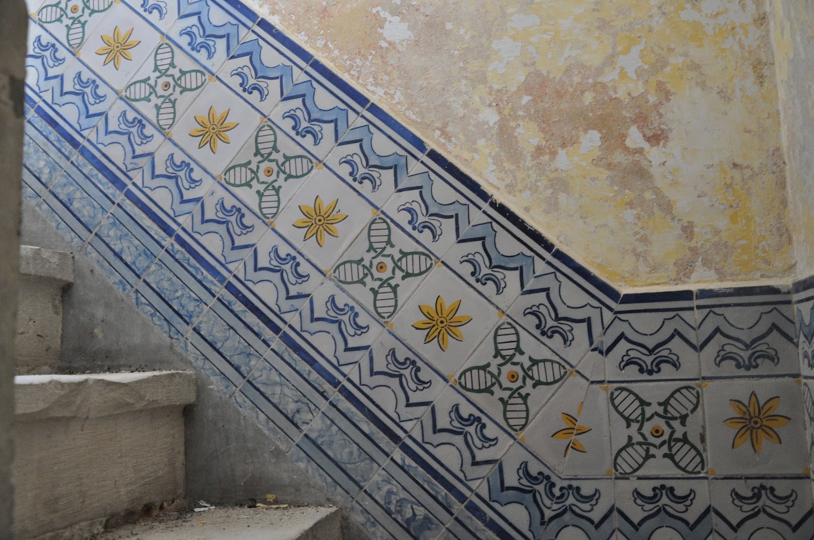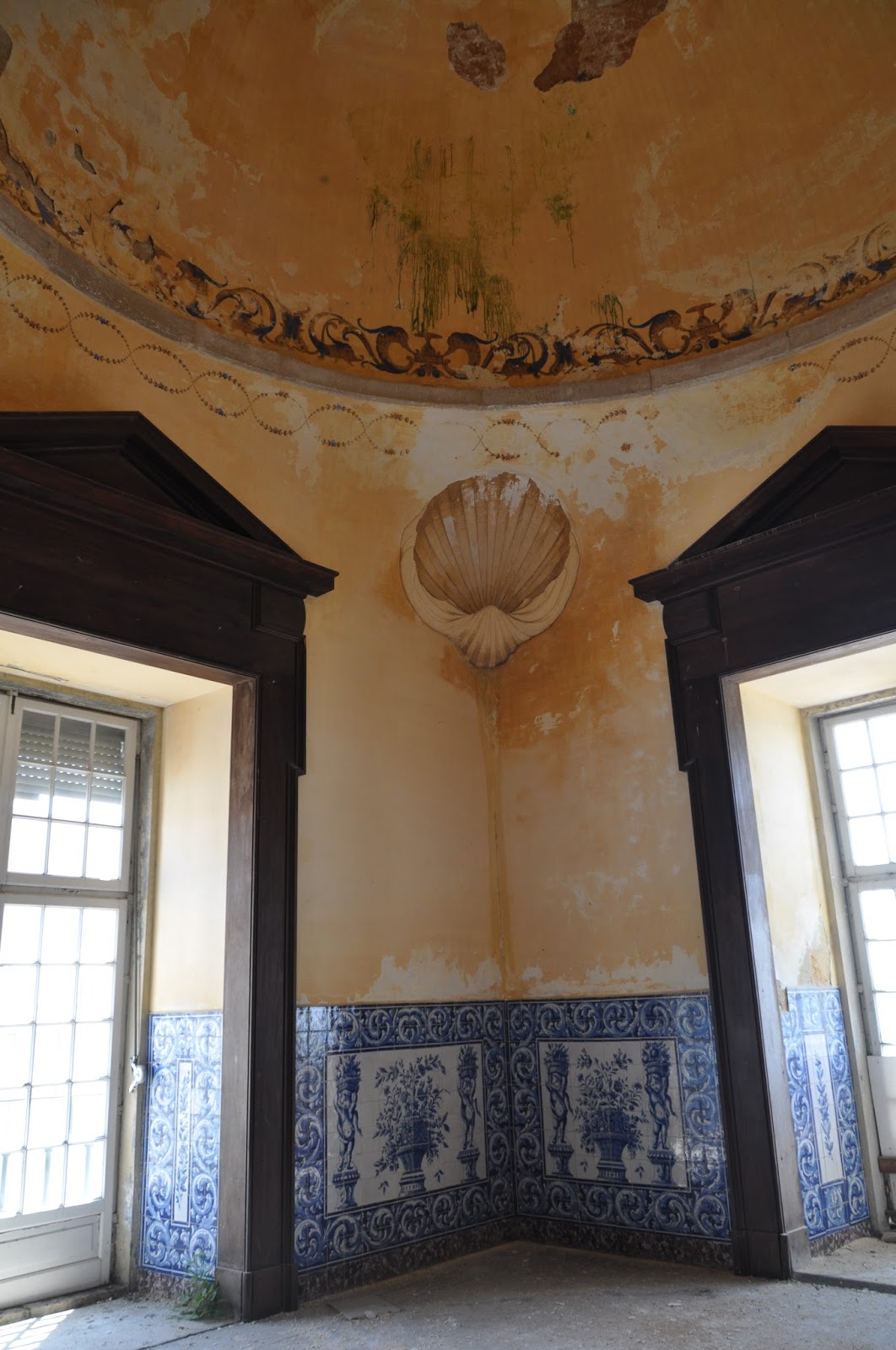 Because of the interest we had shown throughout the visit we were exceptionally allowed to go up onto the second floor which despite not having been refurbished and clearly in need of being made available for the public, had typical Portuguese floral motifs glazed tiles on one of its walls. Its dome had visible seahorse fresco paintings encircling it with rather exquisite huge shells placed in its corners underneath.