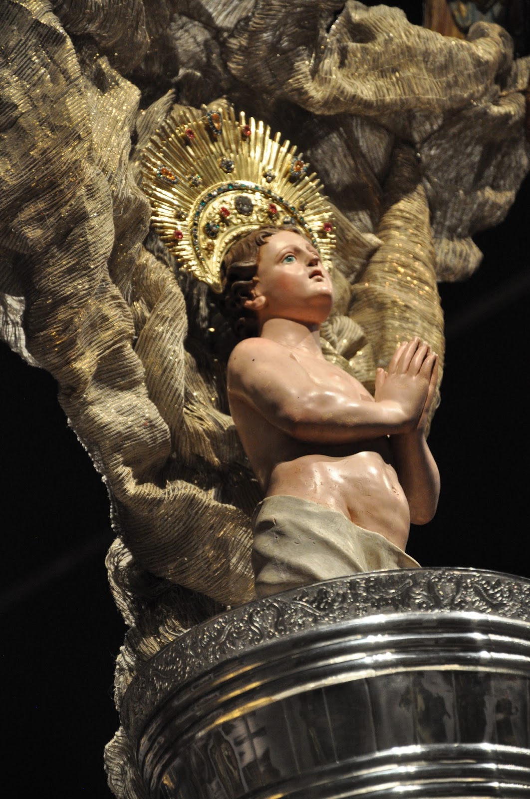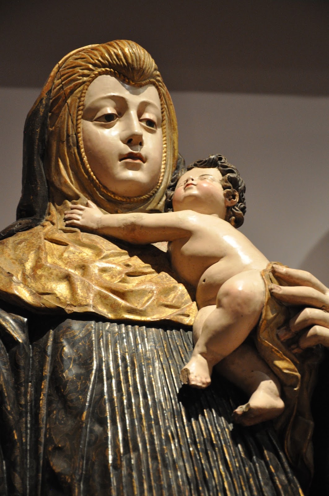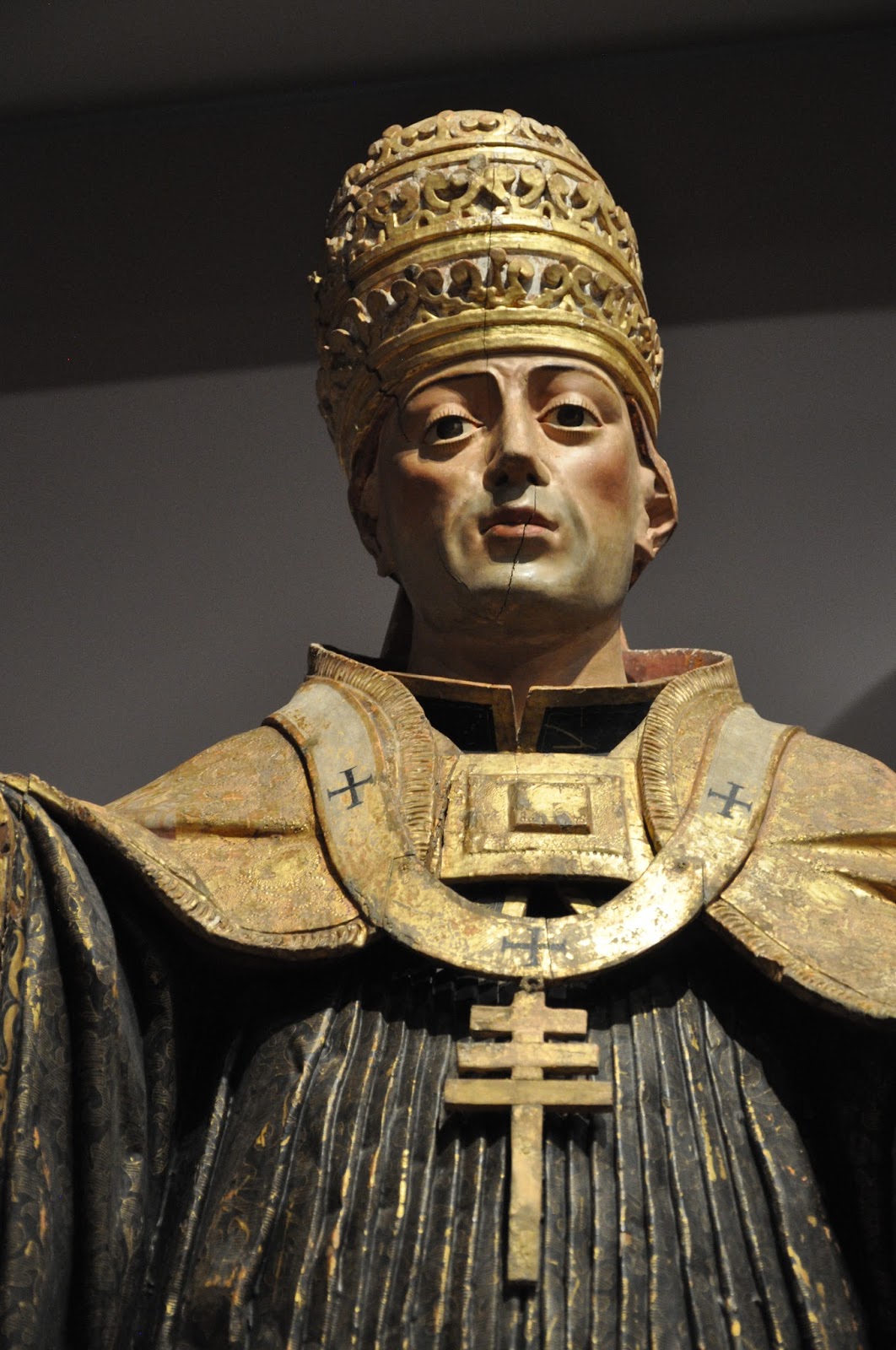 A series of gilded and polychromed terracota reliquary busts of the Virgin Mary, St. Sebastian and a holy nun did invariably catch the viewers' attention and set the epoch. According to provided information they all came from the Monastery of Alcobaça.