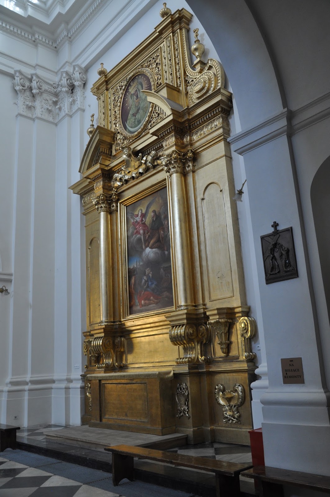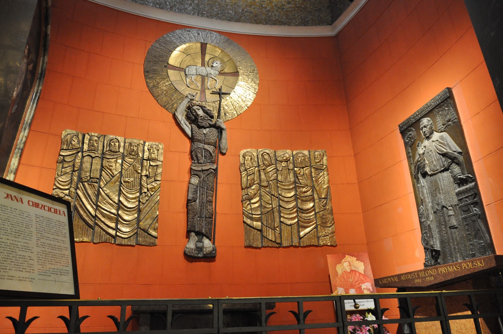 Because of the imminent mass I wasn't able to photograph but the interior around the main entrance door having missed the immured pillar where Chopin's heart is said to have been placed, as well as the urns of several renowned Polish artists.