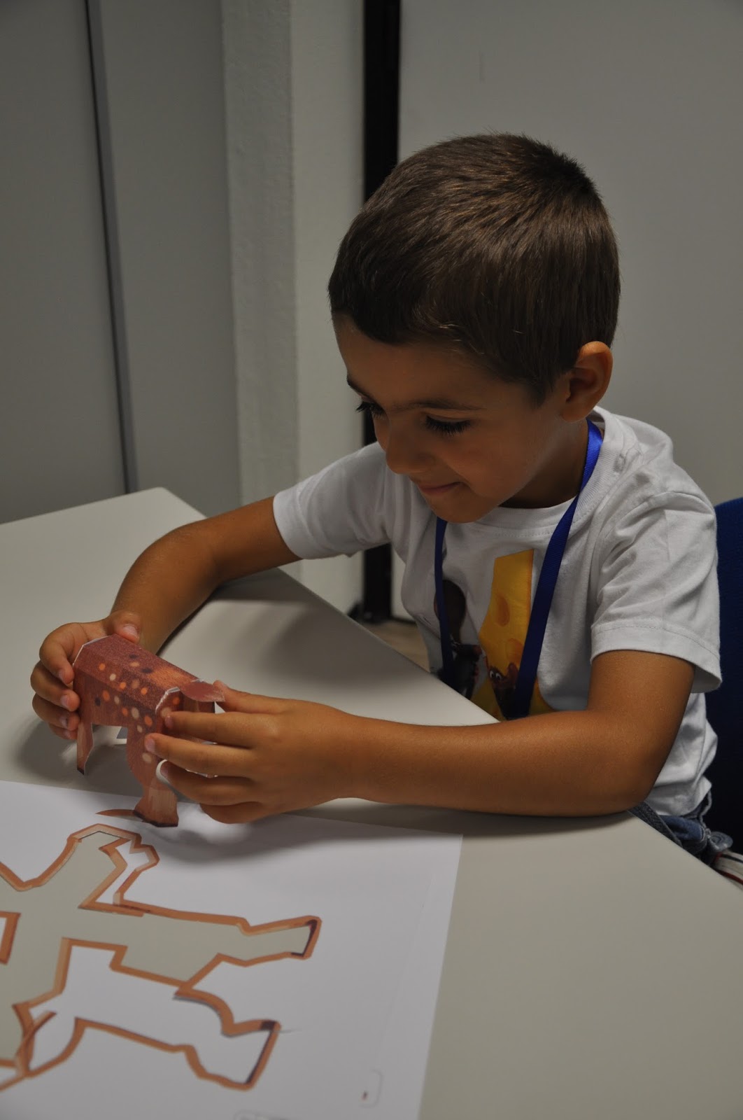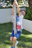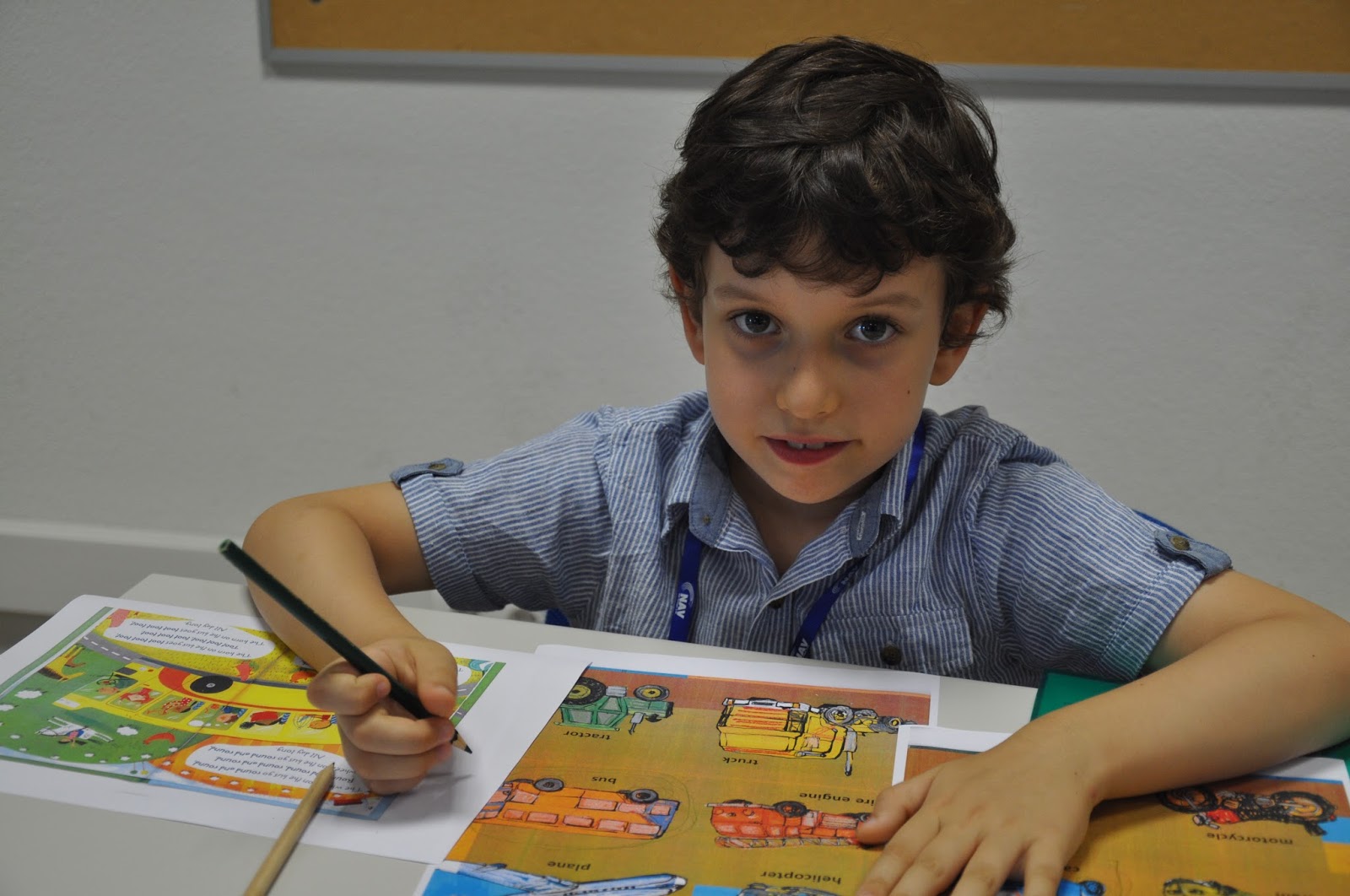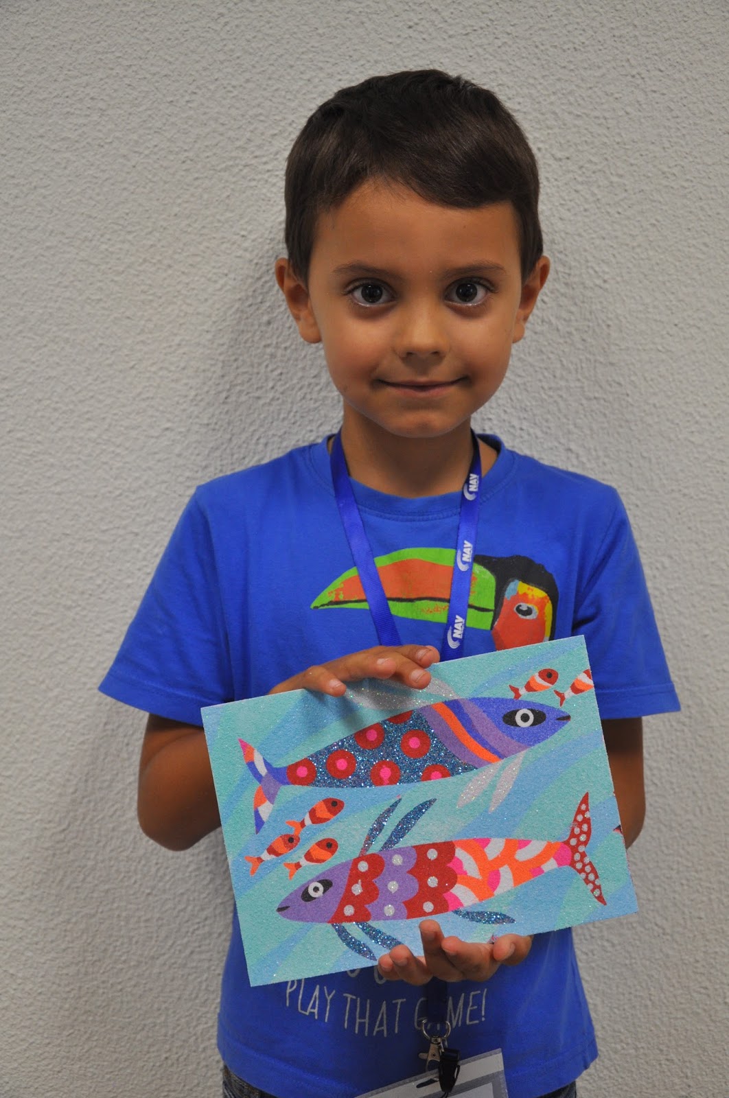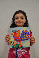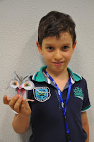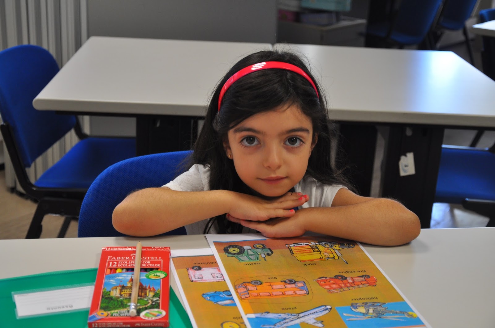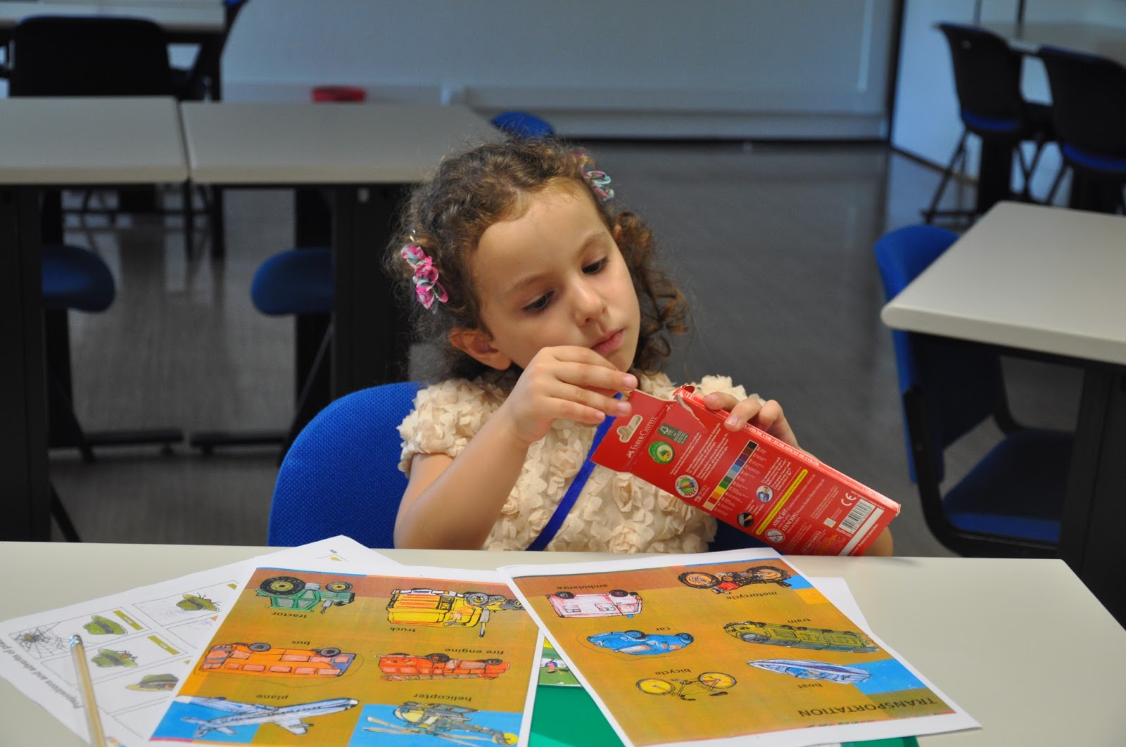 The Head of the Training Centre, who would not be in the following day to hand out the certificates despite being a fervent admirer of this type of activities (whose grandchildren have been attending), was exceptionally allowed into the classroom (Ana and I decorated with the children's photos, as well as their artisitic pieces) where the artistic exhibition would be held.