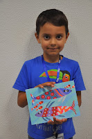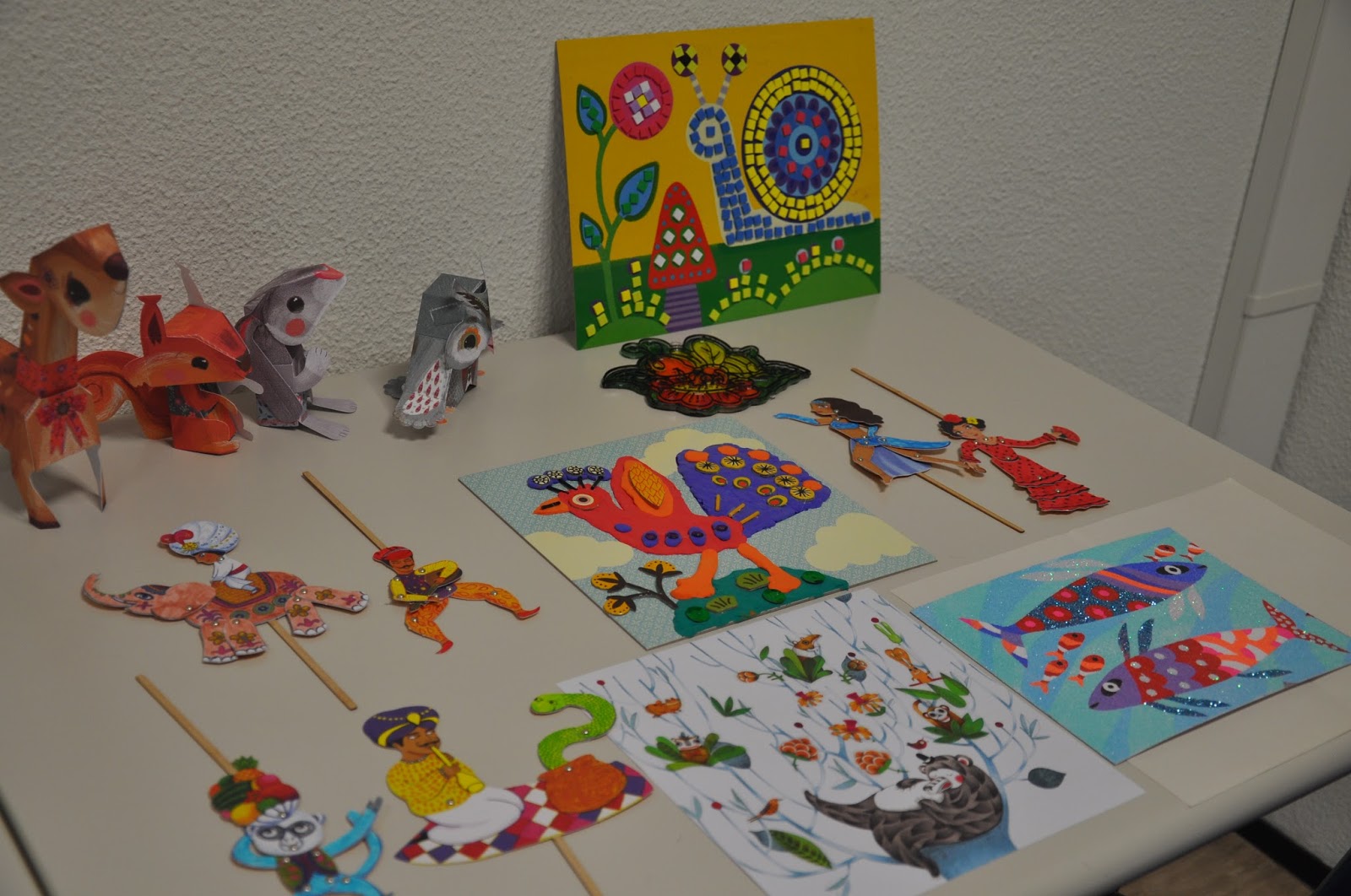 We finally took pictures of the completed artistic pieces, which the children were particularly proud of, whether they were the complicated wooden pieces or the stick on paintings.