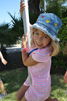 They seemed quite happy and took advantage of the mid-morning break by jumping and swirling around the pole in the grassy courtyard of the Training Centre.