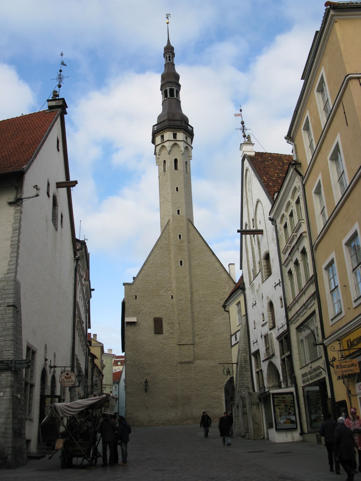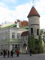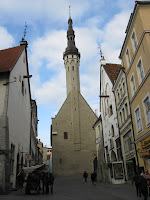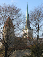 We left the ferry terminal by nine and soon made our way towards the fat Margaret Tower, whose evocative name is said to be associated to the fact that it was the largest part of the city's fortifications with walls said to be 4 metres thick. Originally built to defend the harbour it was later turned into a prison and recently housing the Estonian Maritime Museum. Behind it we could see the spire of Sitn Olav's church which Tallinners are said to have wanted the be the tallest in the world to attract merchant ships.