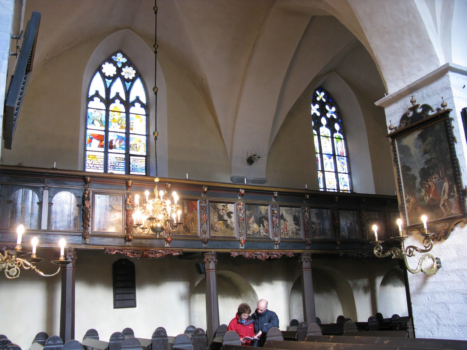 We managed to get into the 13th century Holy Spirit church (whose spire I couldn't photograph because of its height) said to have served as the Town Hall chapel before having been converted into church. It houses a sublime altar tryptic I tried to photograph but which didn't come out well due to the lack of light and the impossibility of using flash inside the church. I did photograph some other religious artefacts though. The church holds a special place in the Estonian history, once the first Estonian sermons were held there in 1535 following the Reformation.