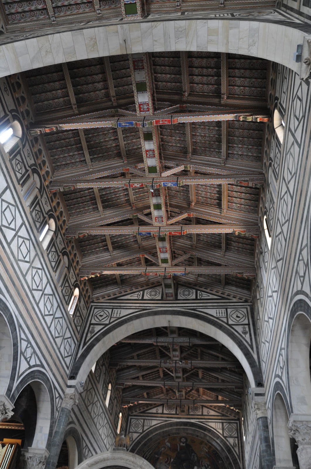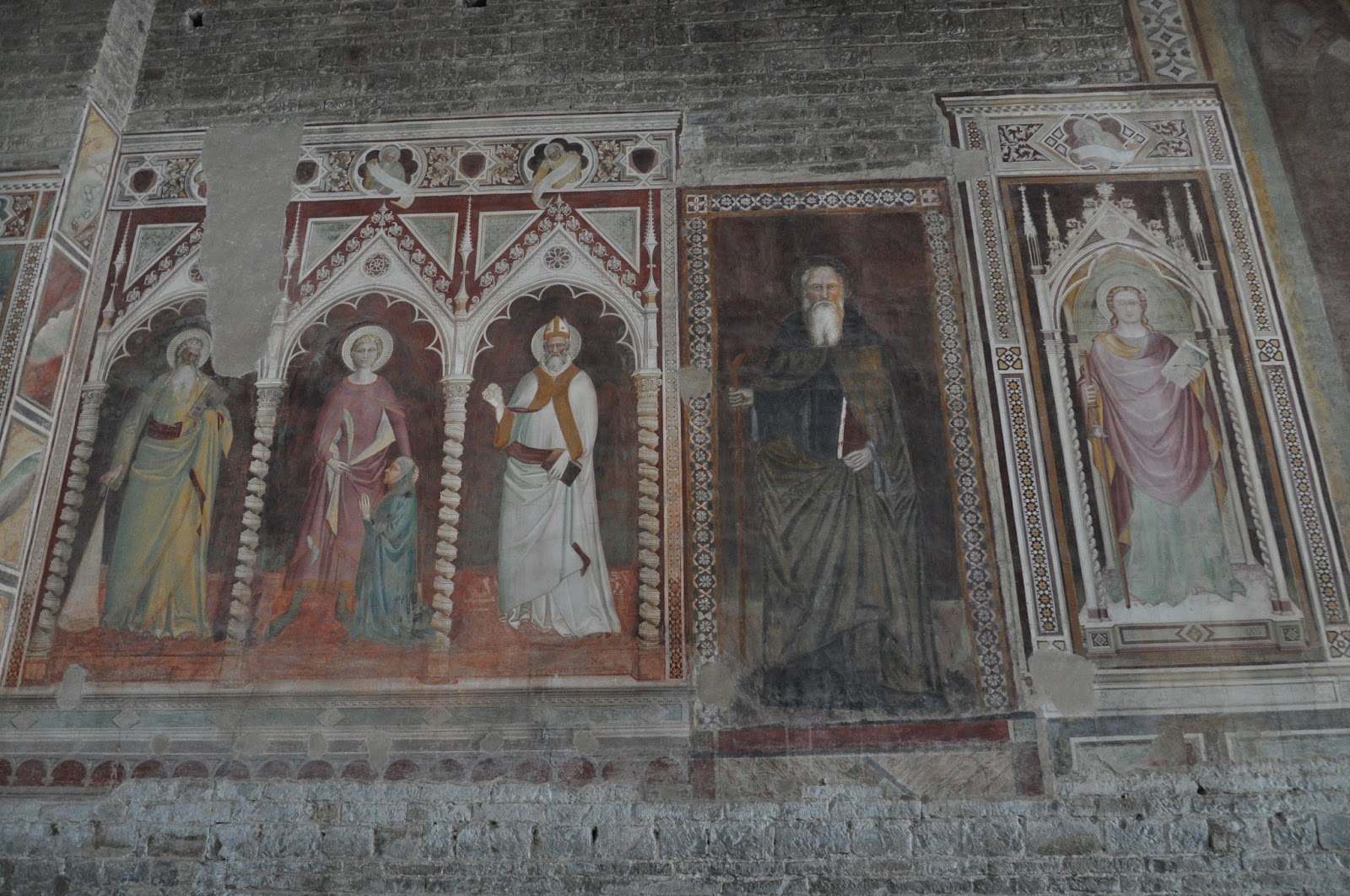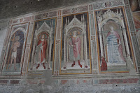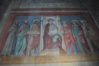 We continued our visit to the church of San Miniato by admiring the high altar representing San Miniato, San Giovanni Gualberto. It is raised above the nave with outstandingly beautiful inlaid marble panels and majolica vault work dating from the 15th century. Wherever I looked there were frescoes that inevitably caught my attention as I walked about. I stopped several times along the way just to feel the atmosphere and intimately praise those who had produced such artistic works.