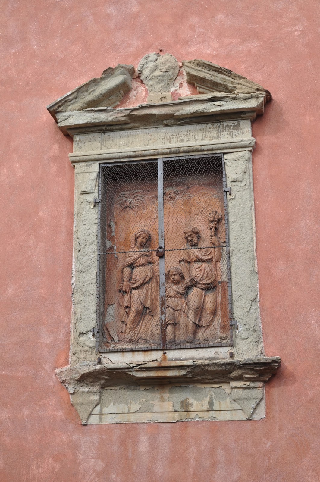 The terracota roundels, whose style I soon associated with the ones we had seen at the Spedale degli Innocenti were in fact sculpted by the same artist, Lucca dela Robbia.