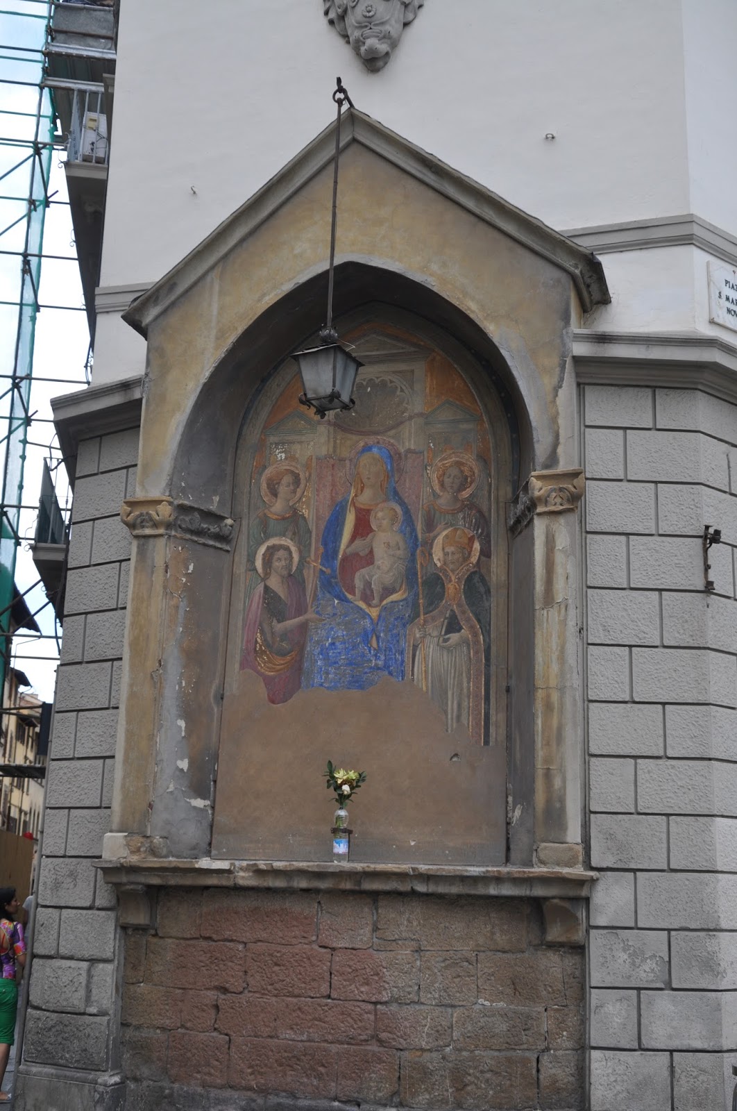 On the way back to the hotel we still took three more photos, one of Dante's painting on a movable caravan and two of a street painting we came across il Borgo La Croce.