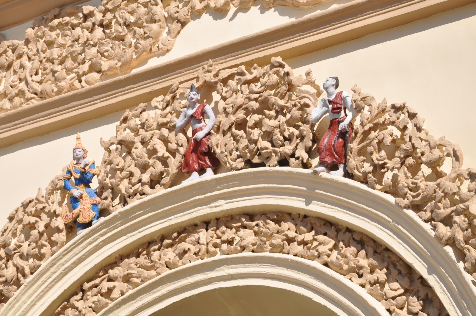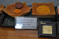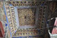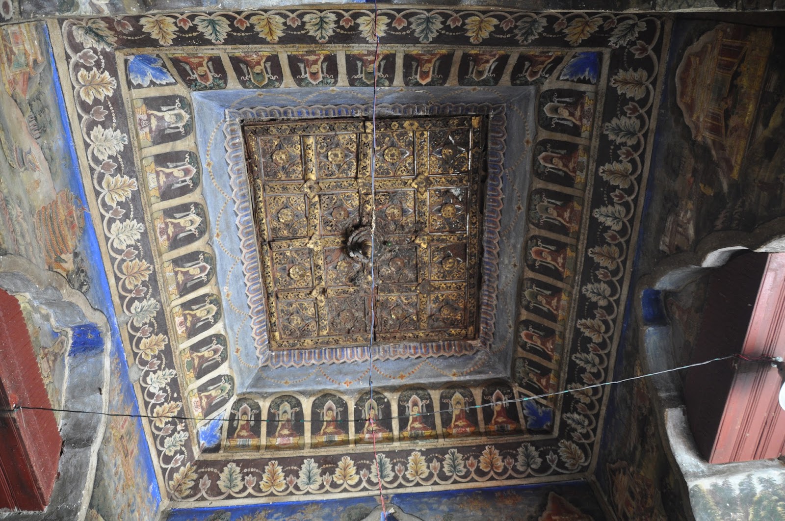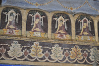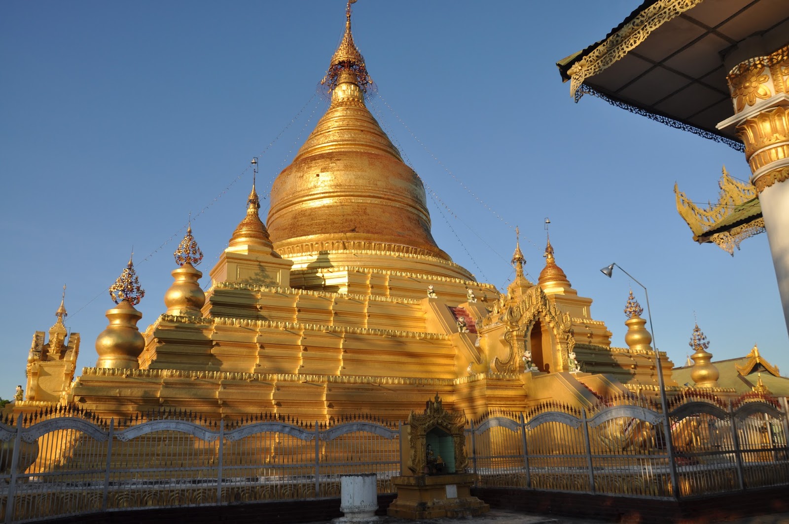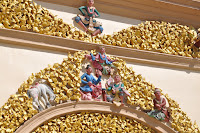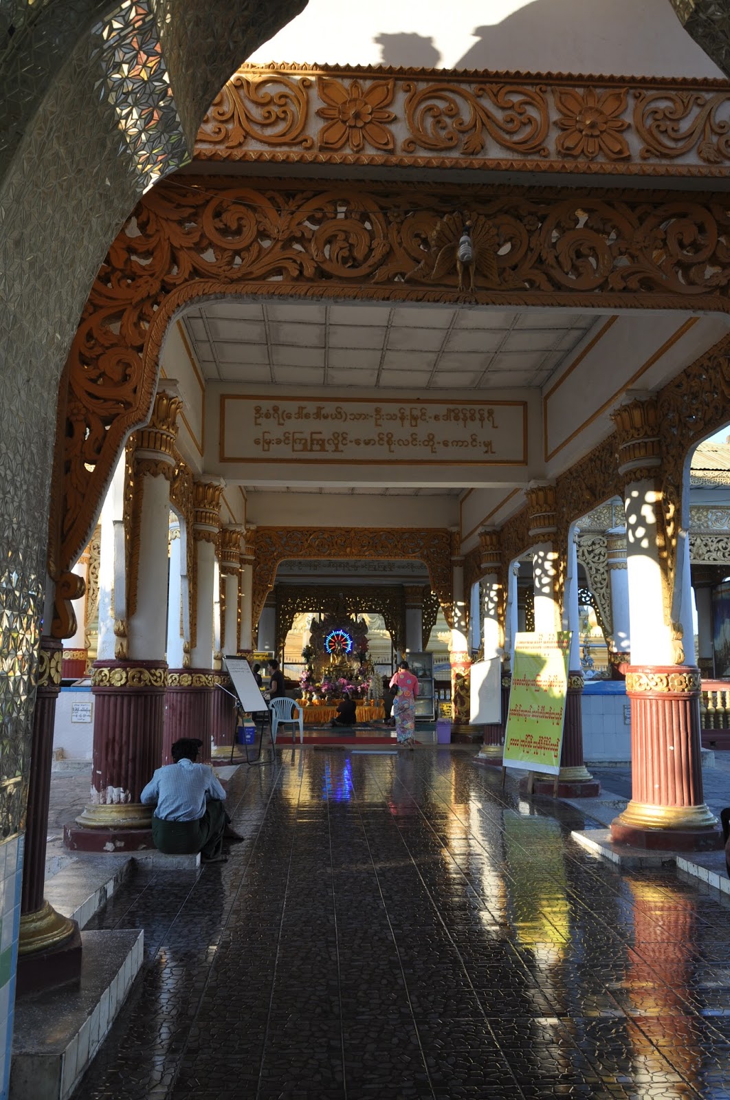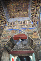 The statue probably cast in 146 AD, five or more centuries after the Buddha's death, rises to 3,8 metres in height and is covered in pounded gold. The fact that so many gold leaves have been pressed on it as offerings has led to a thick carapace-like around its back though the face of the Buddha still looked gleaming. Women were not allowed in the chamber, this being the reason as to why I had to get the Buddha's image photographed from outside its chamber.