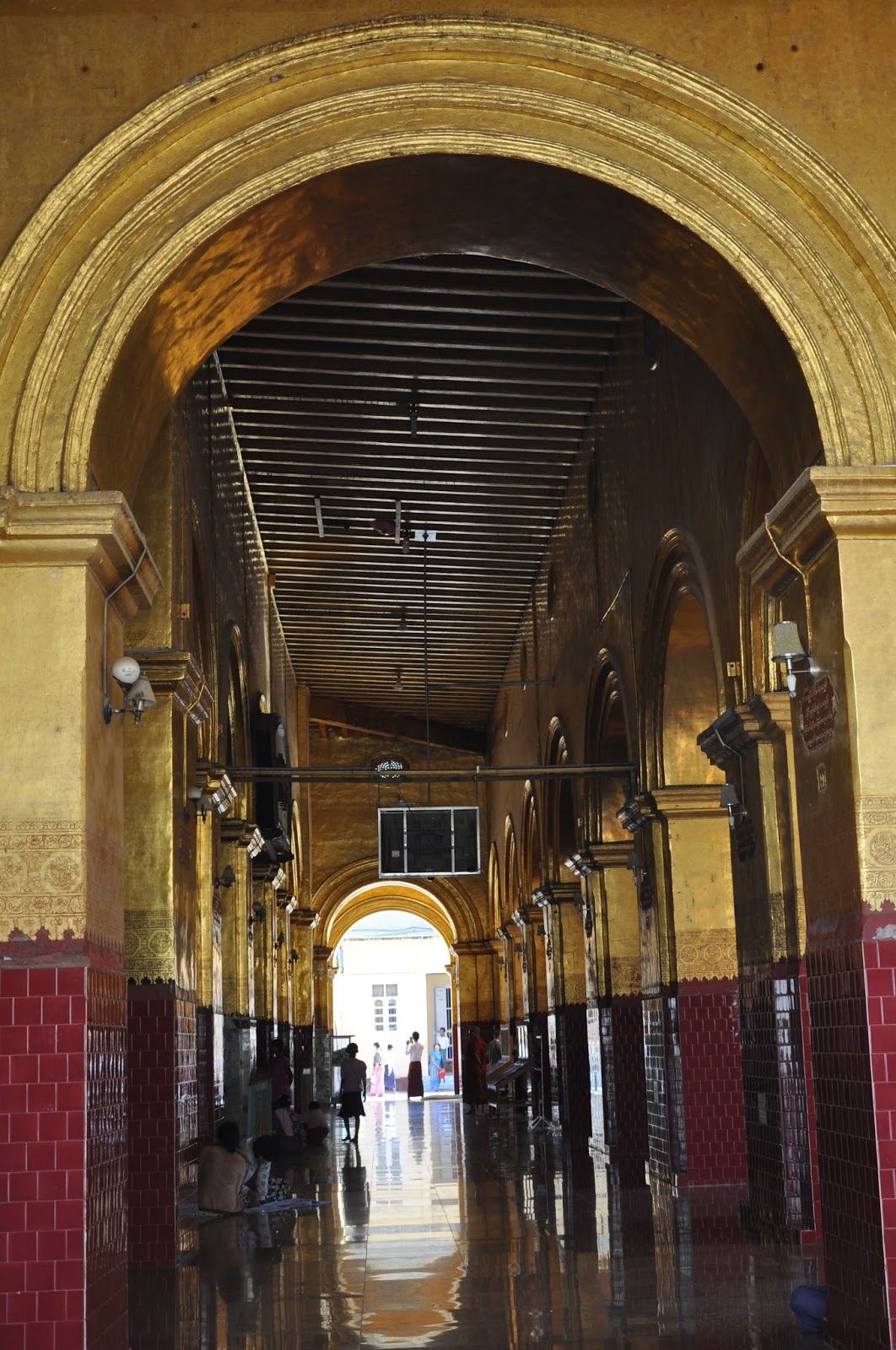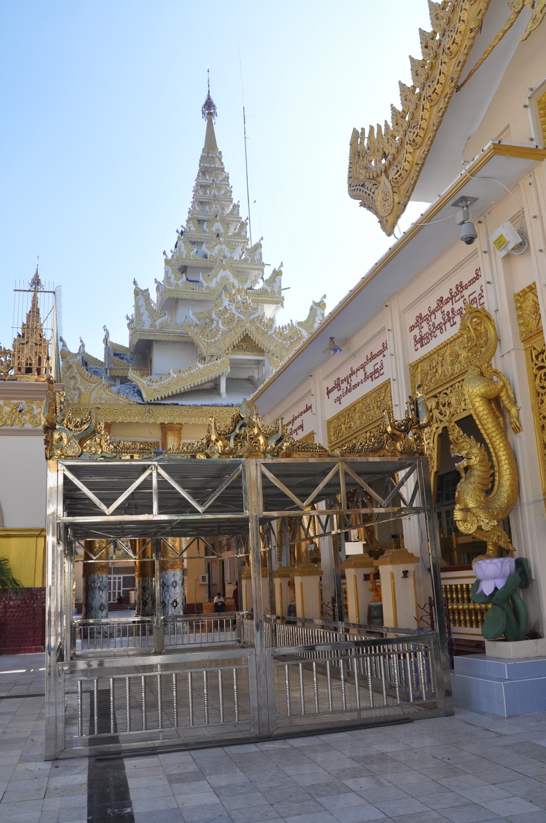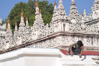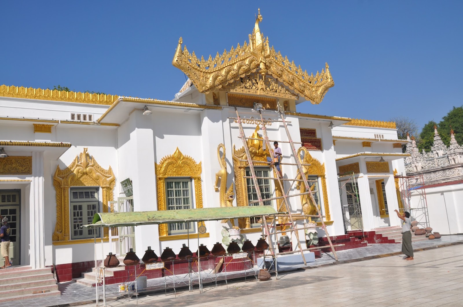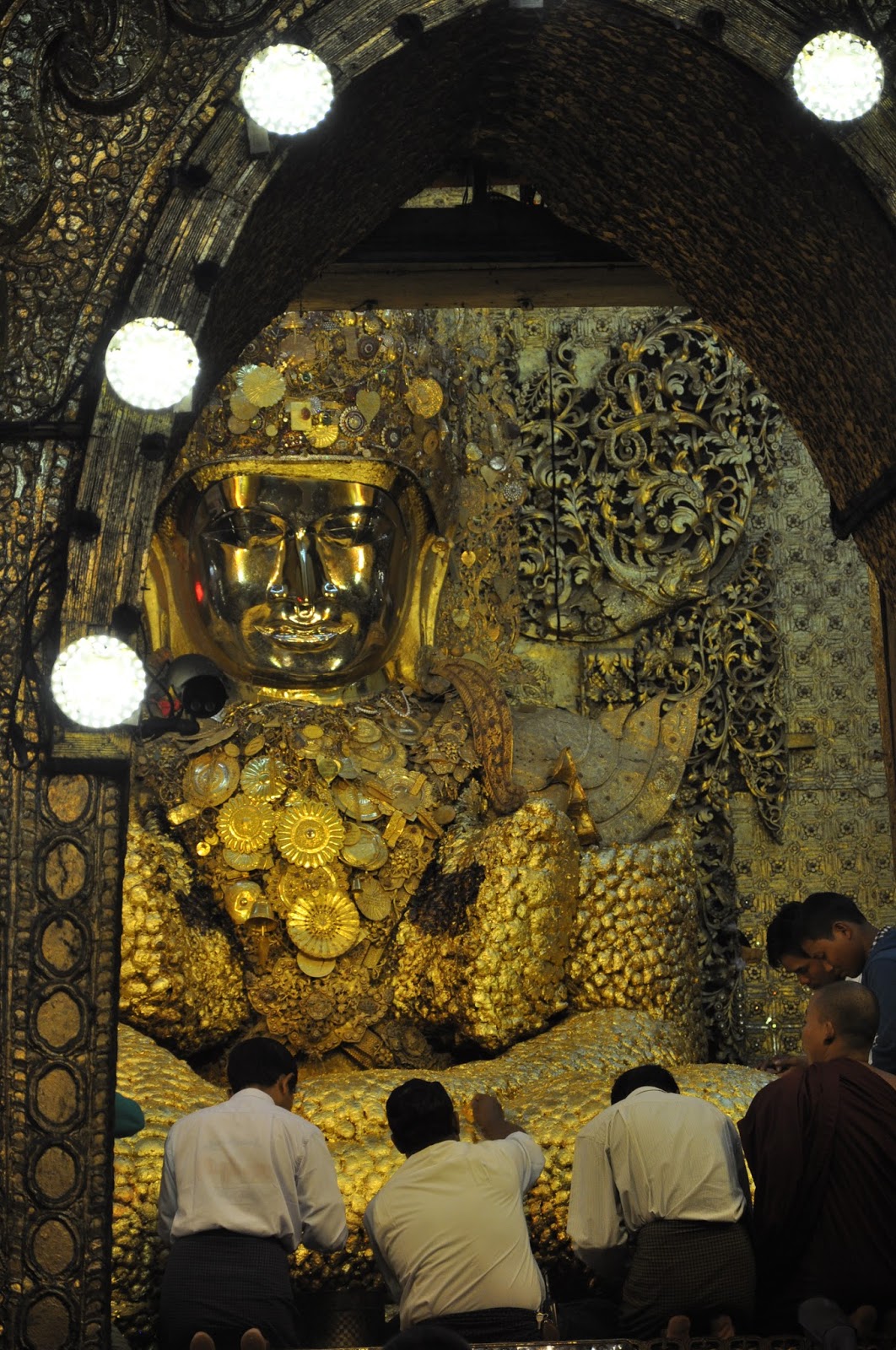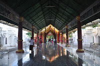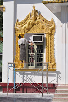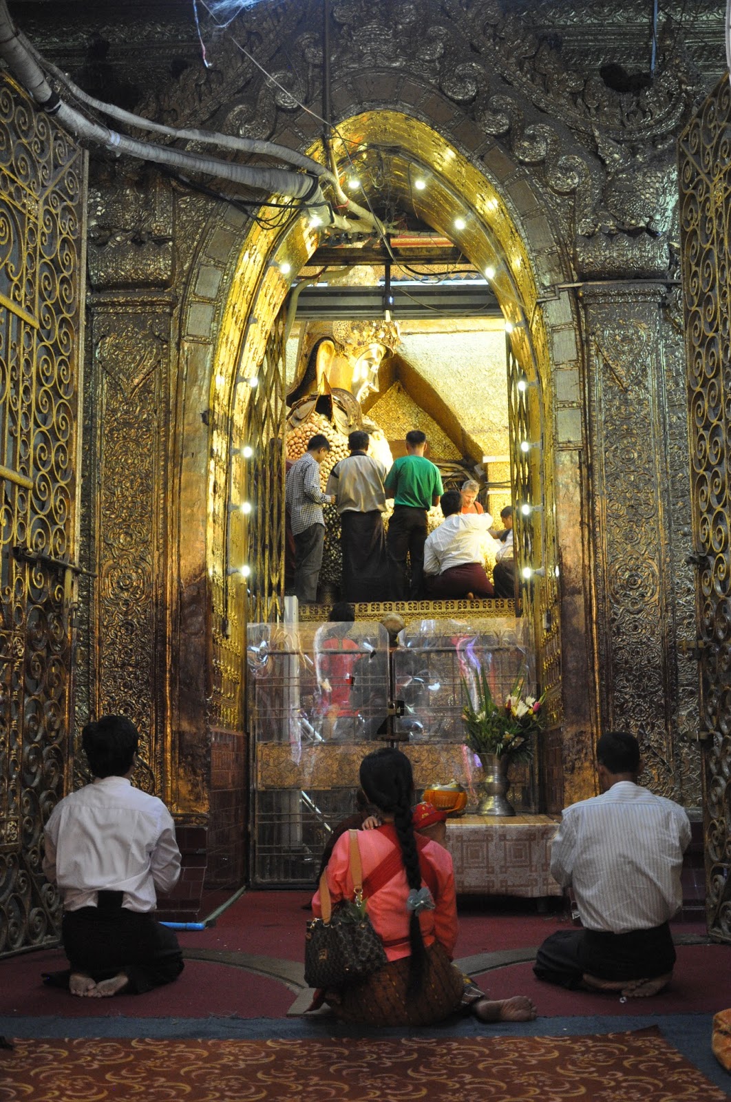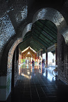 We then wandered around the yard whose surrounding shrines were undergoing refurbishing work before we actually approached the central chamber where the magnificent Buddha's sculpture stood. It is the eponymous "Mahamuni" or "Great Sage which Bodawpaya's troops took during their pilgrimage of the city in 1784. Revered by pilgrims from all over the world, it is believed to have been one of the only five likenesses of the Enlightened one.
