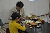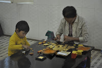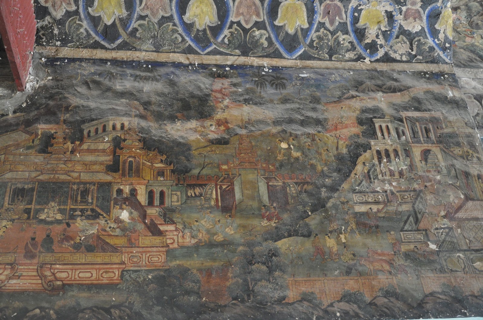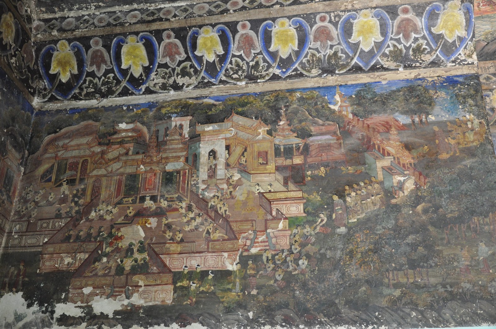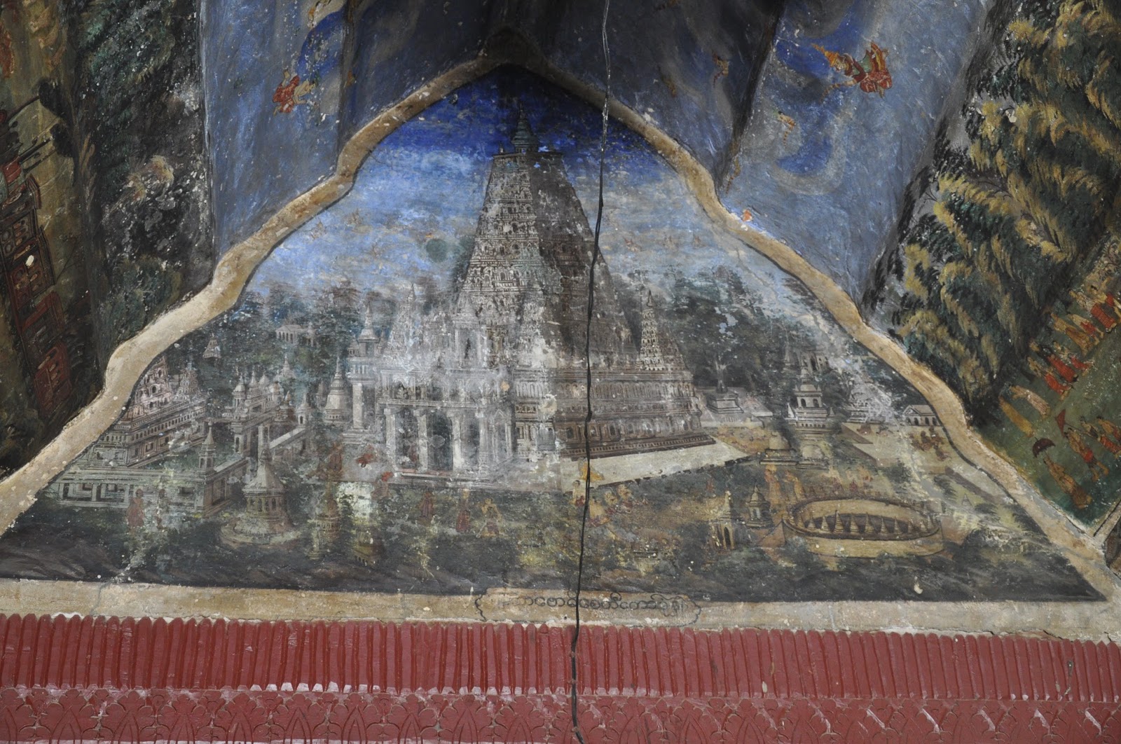 We walked into the most revered Buddhist shrine in Mandalay, the Mahamuni Pagoda (second to the Shwedagon). We had to walk along a corridor profusely decorated with frescoes, some of which were faded away and lined up with handicraft shops.