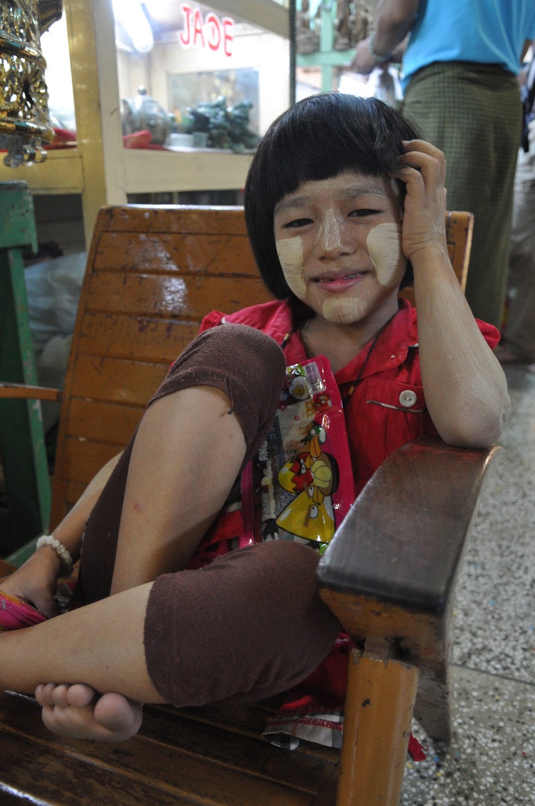 I sighted a young girl sitting on a stool outside one of those shops and decided to hand her out some of the small gifts I had brought, which made her subtly smile back at me.