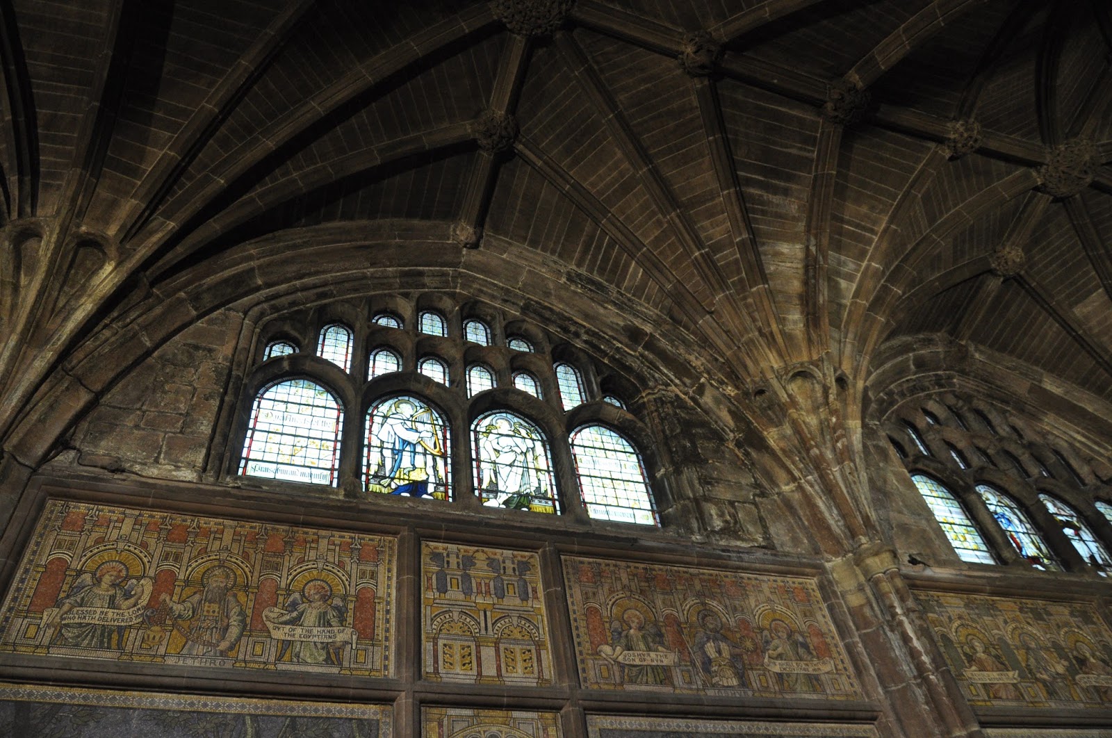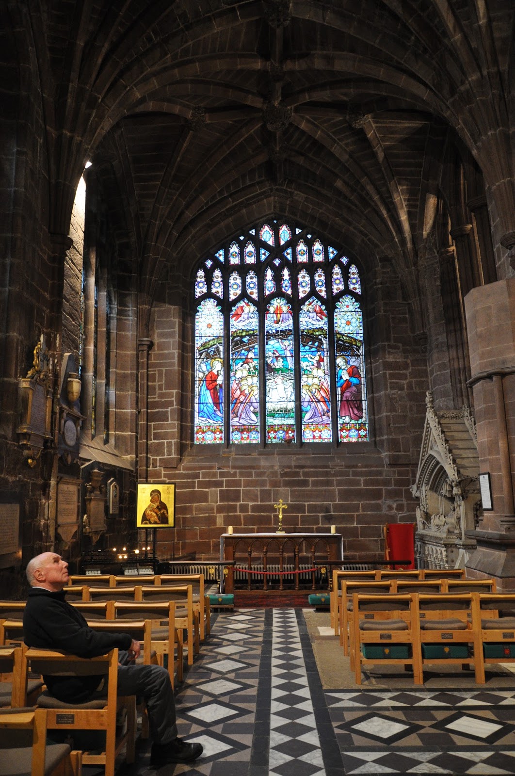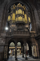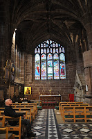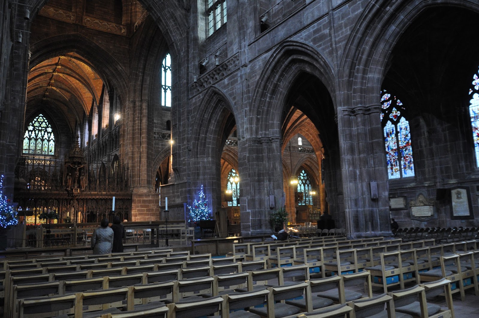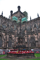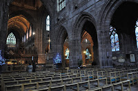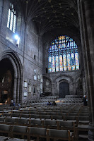 Dating from 1093 and the early 16th century the Chester Cathedral has often been restored. We didn't initially realise how big it was as we wandered about its cloisters lined with Christmas trees decorated artistically.