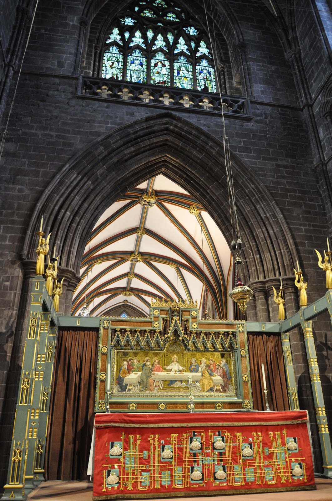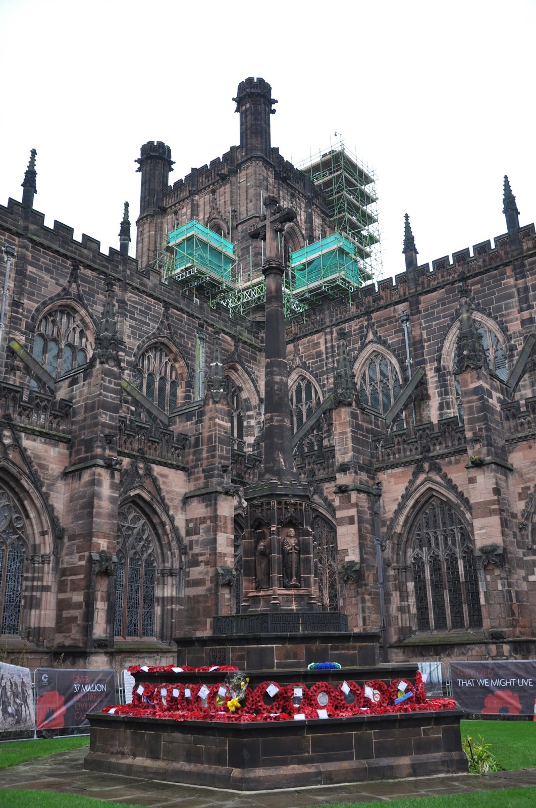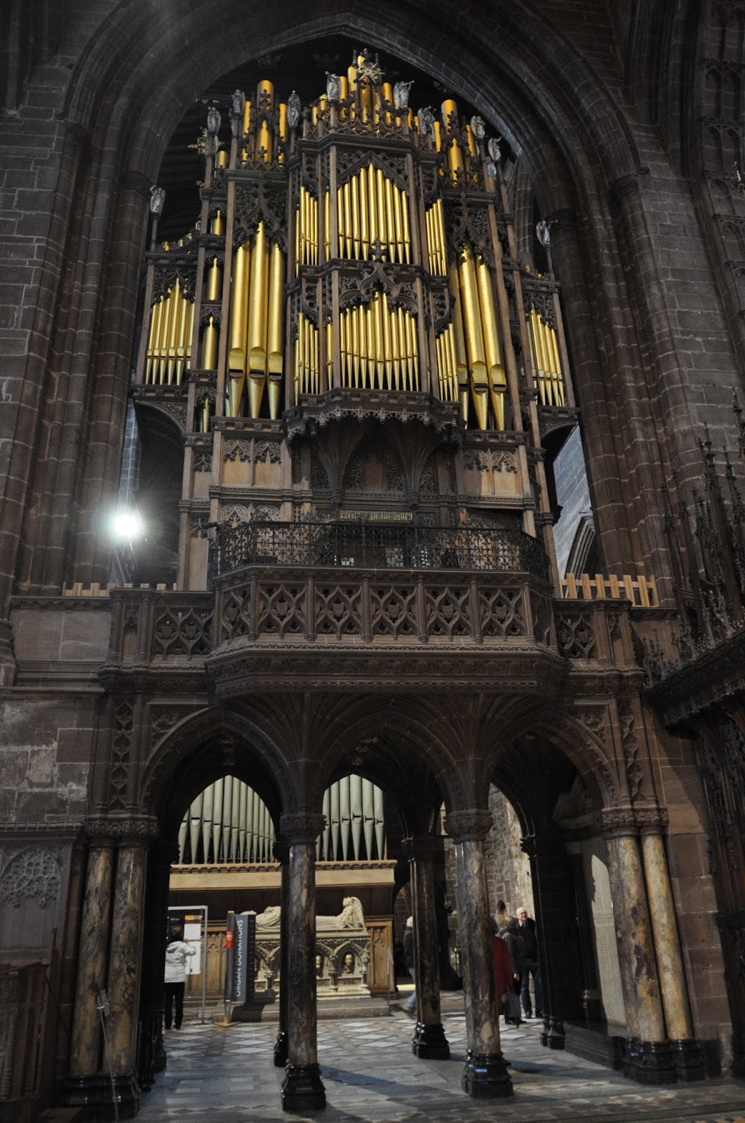 Dating from 1093 and the early 16th century the Chester Cathedral has often been restored. We didn't initially realise how big it was as we wandered about its cloisters lined with Christmas trees decorated artistically.
