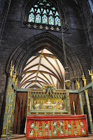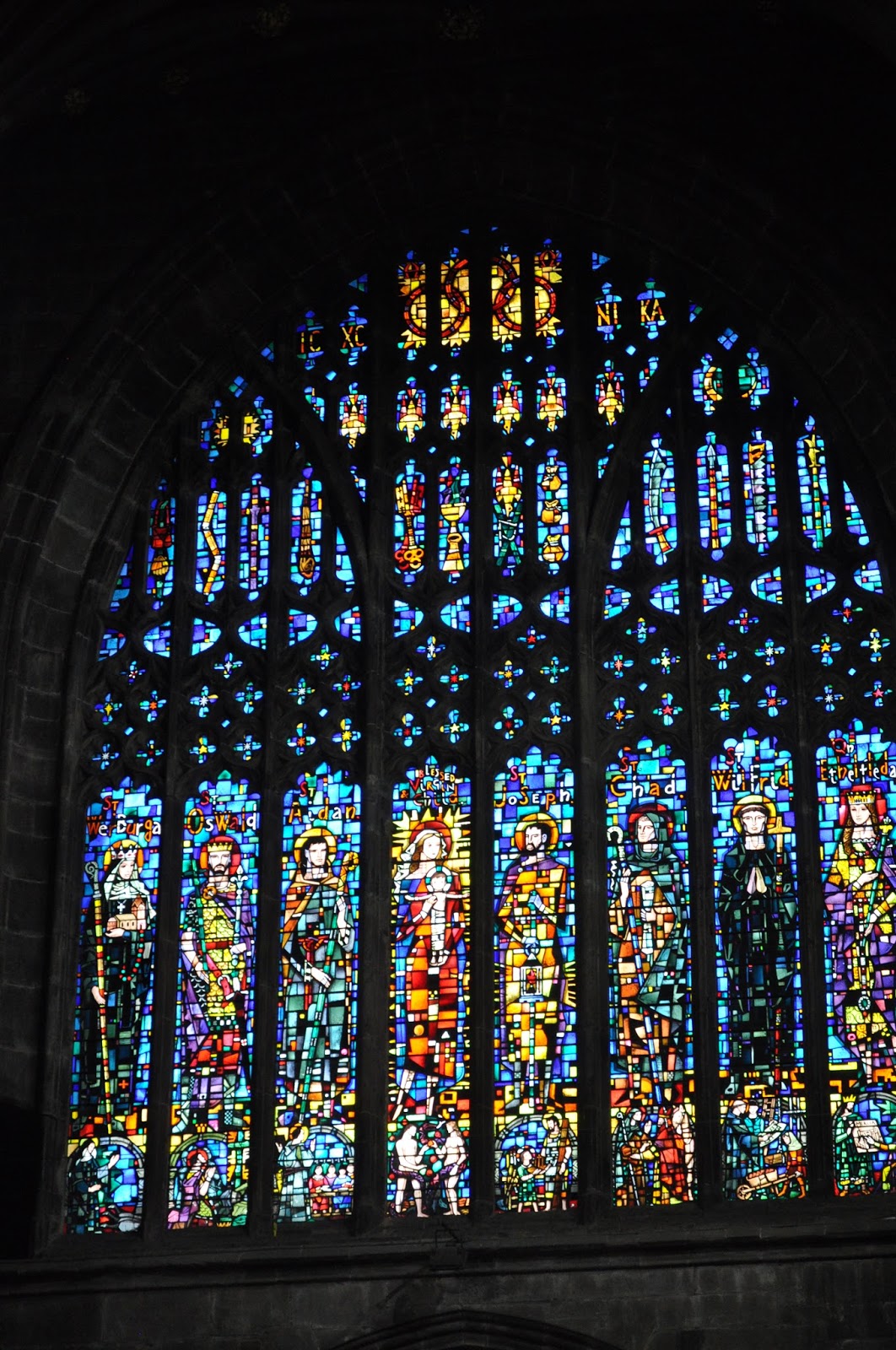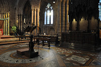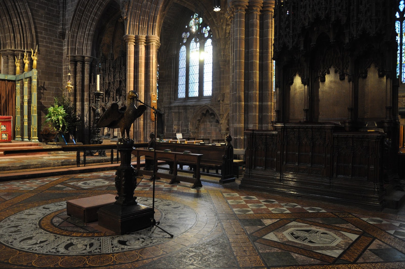 Some isolated elements were highlighted as I wandered about, amongst which were the nave lectern, the choil , which I later realised dated from the early fourteenth century and the West window twentieth century stainglass by Carter Shepland.
