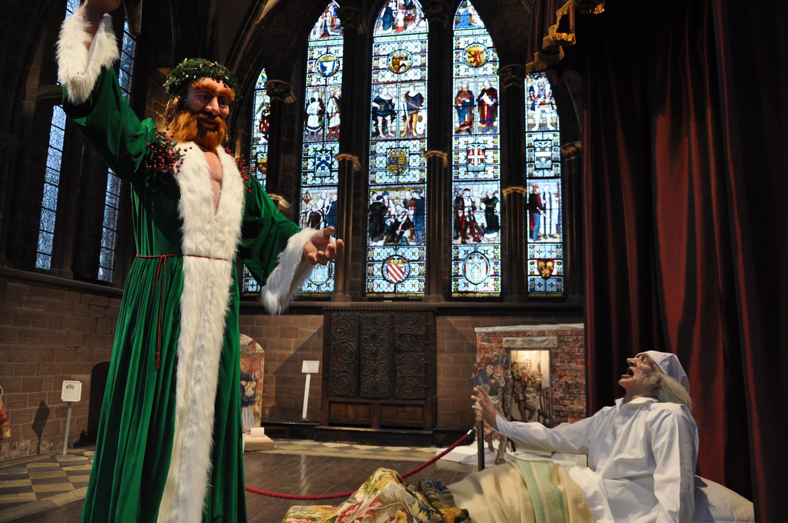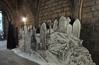 What seemed rather interesting was the fact that Charles Dickens's characters had become part of the Cathedral's attractions in as much as the Ghost of Jacob Marly, Scrooge in his counting House with Bob Cratchit and even Scrooge's graveyard with the ghost of Christmas yet to come were "embedded" in various locations of its interior and exterior, all of which apart from extracts from Charles Dicken's tale had "pauses for thought" taken from the Bible were copied down.