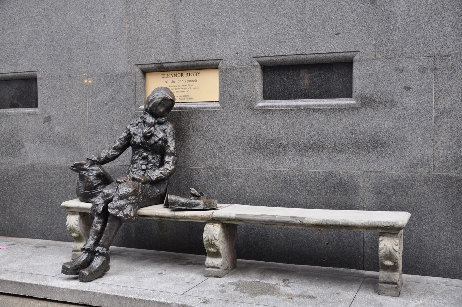 As we stopped on Stanley street we came across the famous bronze sculpture of Eleonor Rigby, one of Beatles' well known songs with its "magical" objects including a Bible, sonnets for love and a clover leaf.