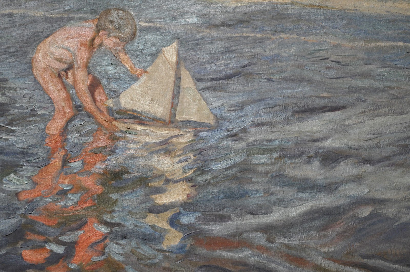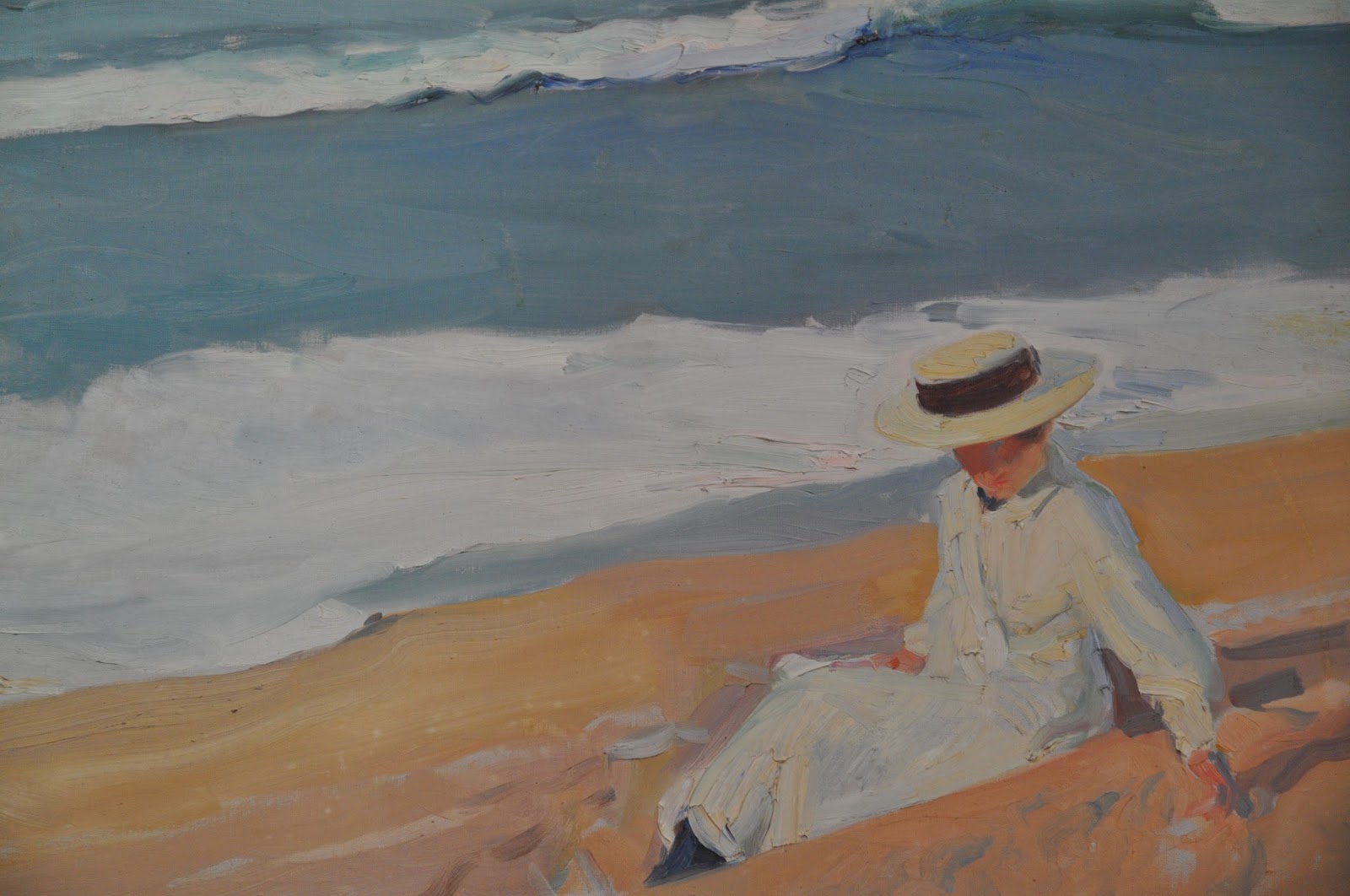 Many of his paintings seem to also explore the visual effects of light on the water and shadows on the sand, focusing on the scenes deprived of any horizon and thus creating a certain degree of intimacy with the depicted characters.