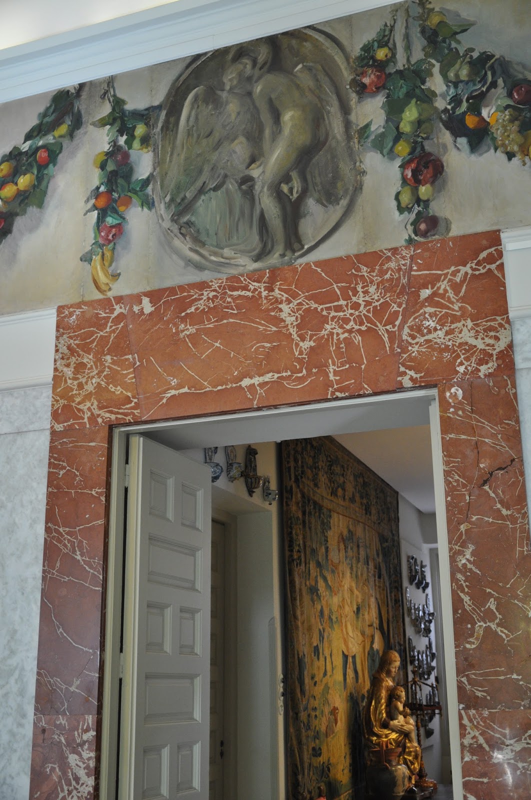 The dining room had a rather vibrant decoration with a spectacular frieze painted by Sorolla above the marble skirting depicting garlands which are said to have become popular in the Italian Renaissance and in which his wife and two daughters were depicted once more.