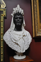 Cleopatra - a late 19th century sculpture by Lambardi Eugenio (left). Mrs. Barbe Sladen - a 19th century marble sculpture by Baron Carlo Marochetti (right).