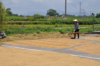 Upon having reached the agricultural village of Duong Lam which is believed to have a history of 1,200 years and several houses dating back to 400 years, rice had already been harvested and the whole process of having it laid out on mats to dry in the sun was going on. I briefly pondered on the whole work involved in its cultivation and couldn't help but thinking on the huge Vietnamese productivity regarding rice as being the result of hard manual and animal labour.