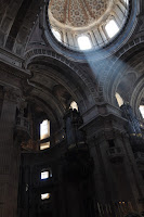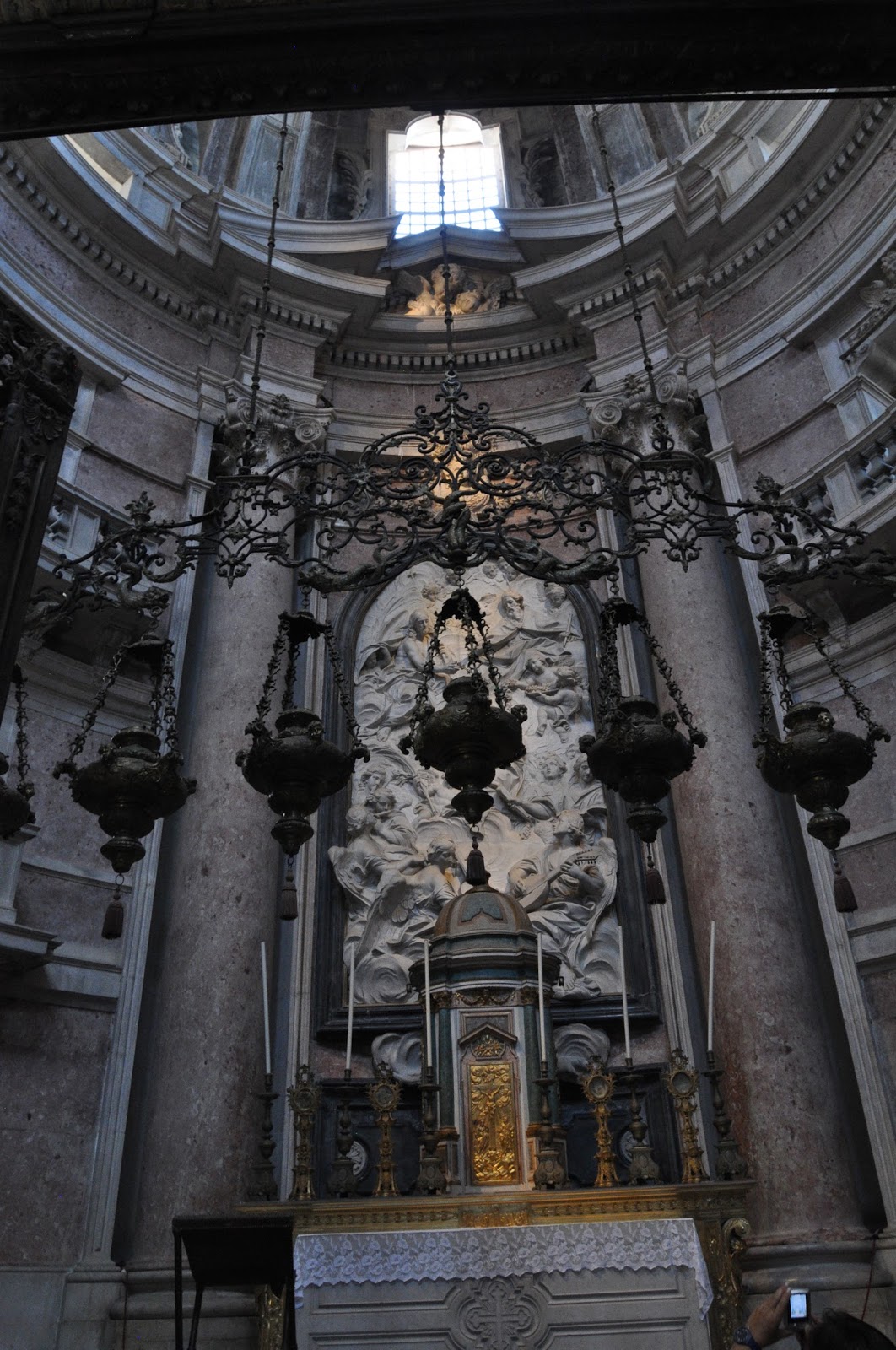 The Library which occupies the noblest of all the Palace's building was simply mesmerising . Its floor paved with limestone of different colours, with a dome in the centre supported by four arches and crowned with a marble stone on which a human face is carved to represent the sun.