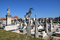 We decided to have a look at the cemetery located close by and there again several things cautght our attention, namely regarding the decoration and shape of the doors of some burial plots but especially the following sentence above one of those "Aqui jaz um velho infeliz" (here lies an unhappy old man).