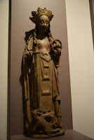 1475 polychromed limestone St. Catherine sculpture - Carved in "M" monogram (left). 1460 polychromed limestone St. Catherine attributed to João Afonso (right).