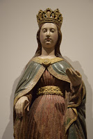 1475-1500 polychromed limestone sculpture representing the Virgin Mary - Estremadura workshop. In this sculpture Mary is represented as the queen of the Heavens. In it we can identify the traditional Portuguese Medieval sculpting approach.