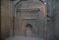 As we walked around the area we ended inside the Friday Mosque, which I had not been to in the evening, let alone seen lit up. What mostly impressed me though was a beautiful ly decorated stucco mirahb in the roofed corridor of the eastern entrance of the Mosque, which is believed to pertain to the Ilkhanid epoch and thus the 7th and 8th centuries.