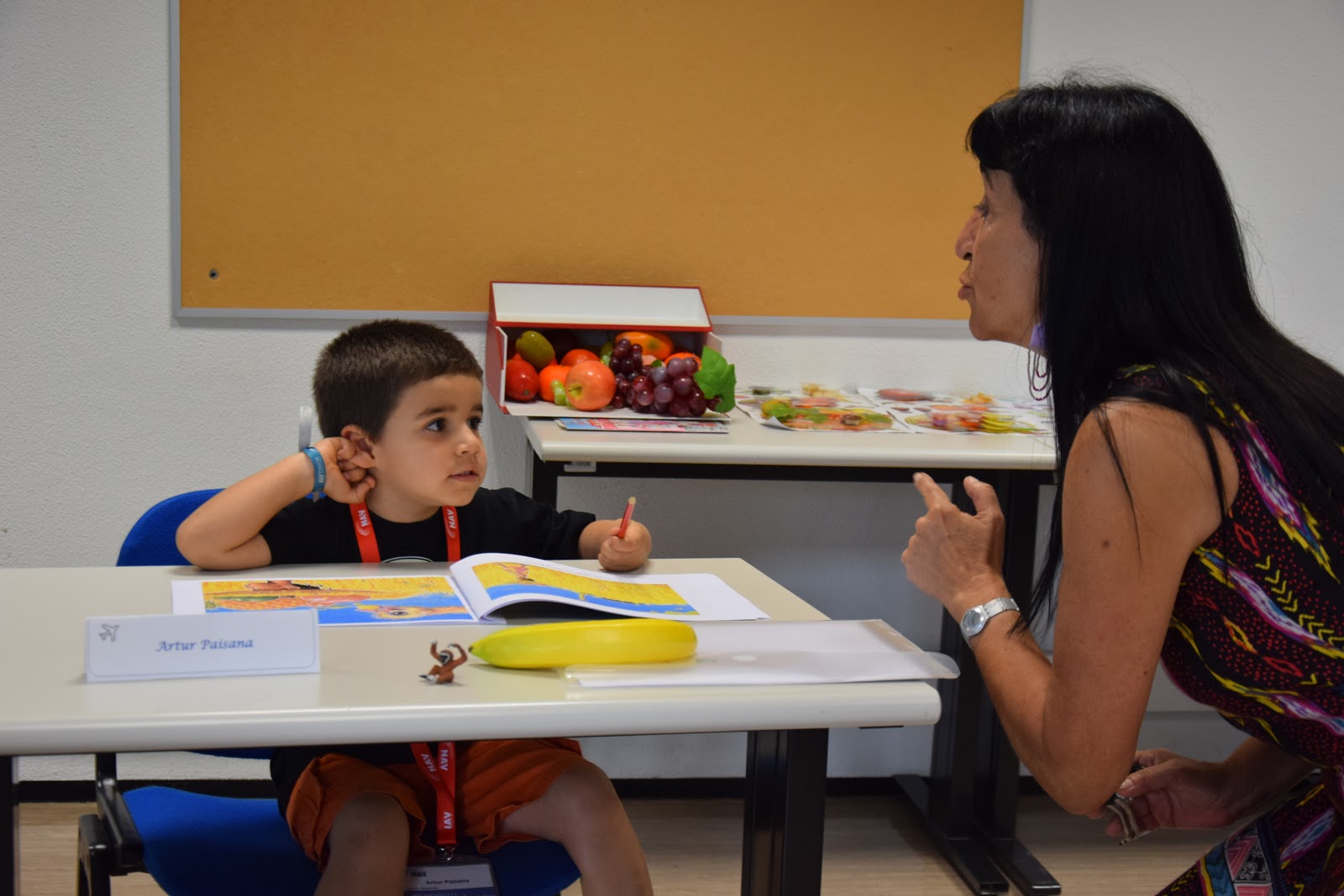 Having a 4 year old child among 6 year olds worried me initially, though I soon realised he was so committed and outgoing that he had no problem at all in adehring to all the activities and was mostly at the forefront of everything, having an incredible capacity to memorize words (the course theme was related to fruits and animals).